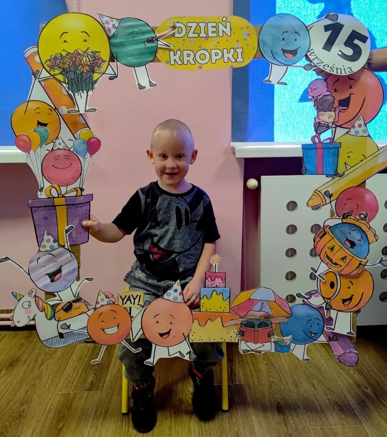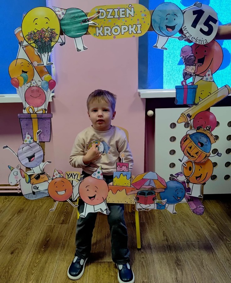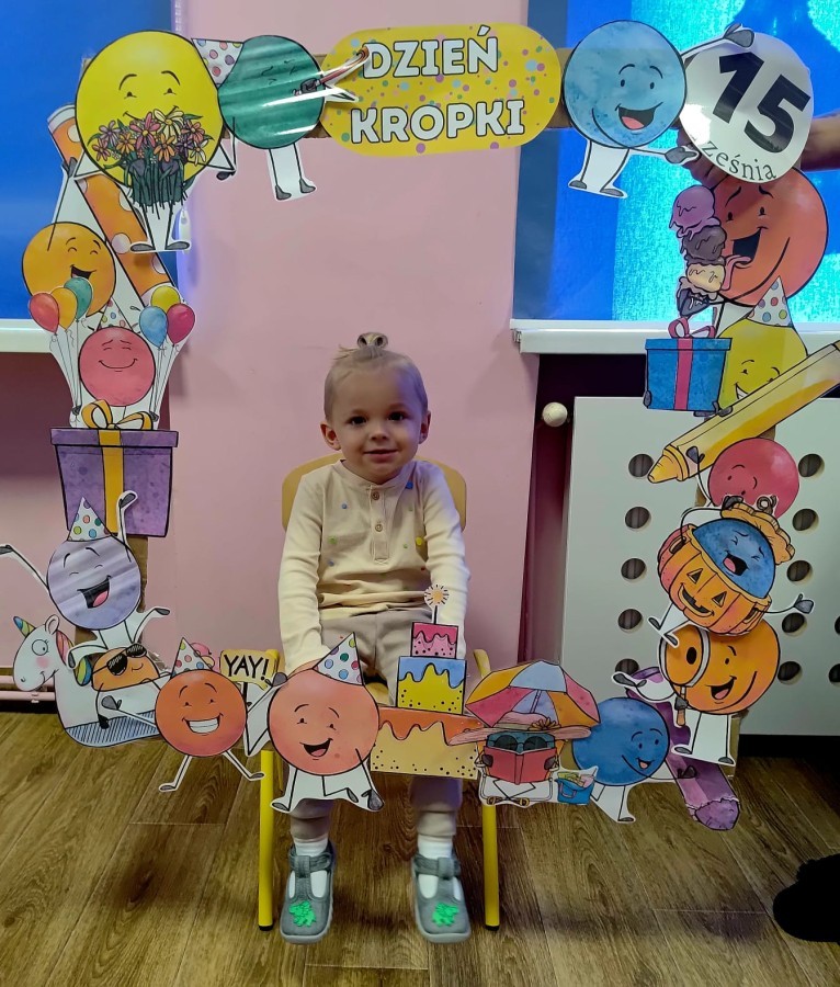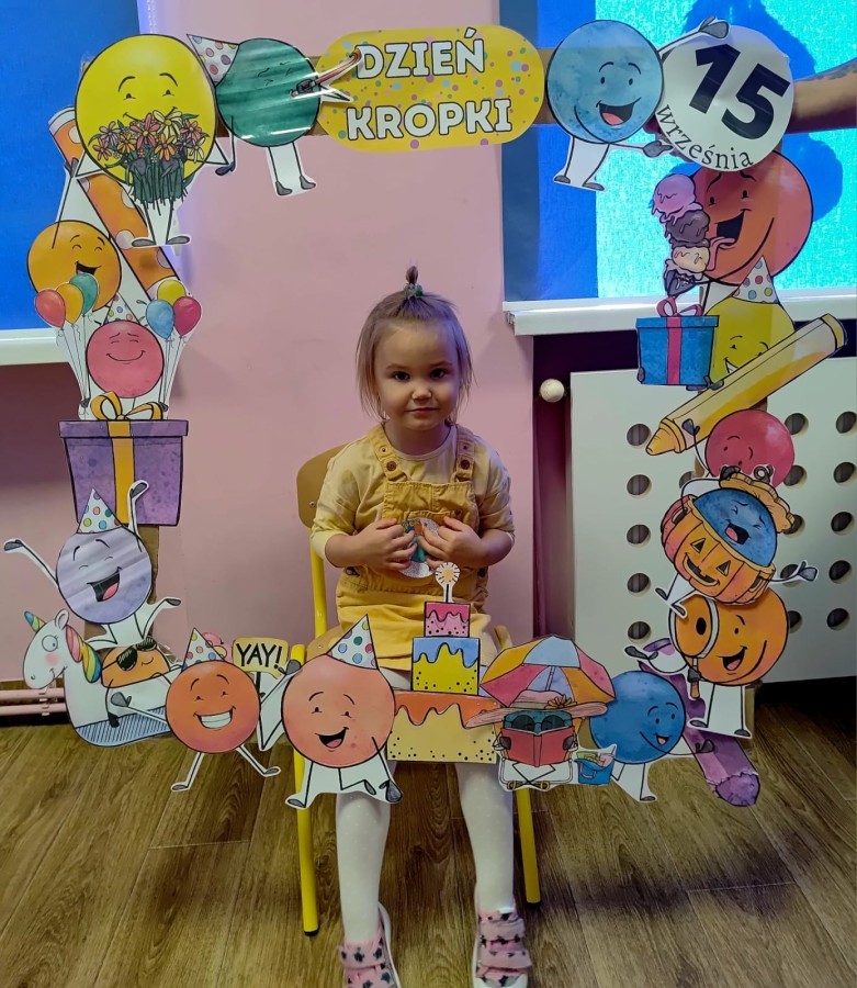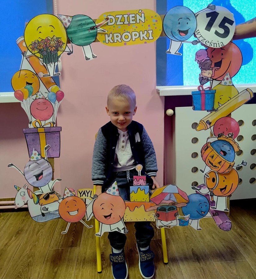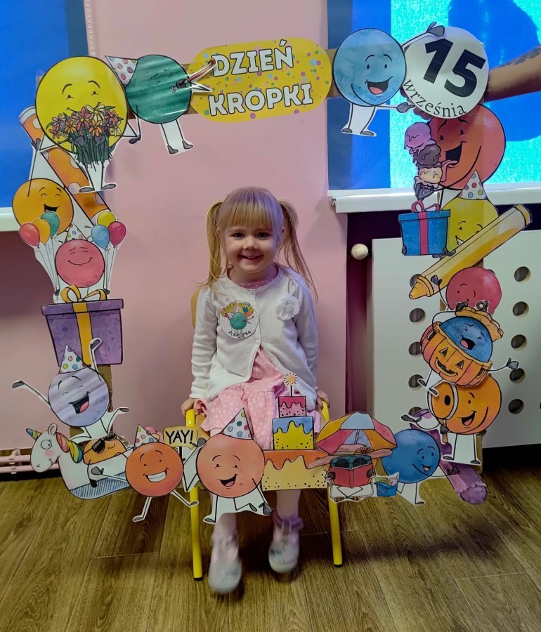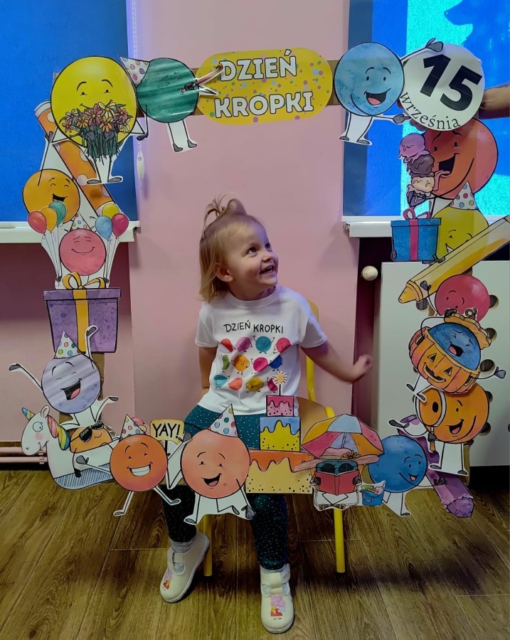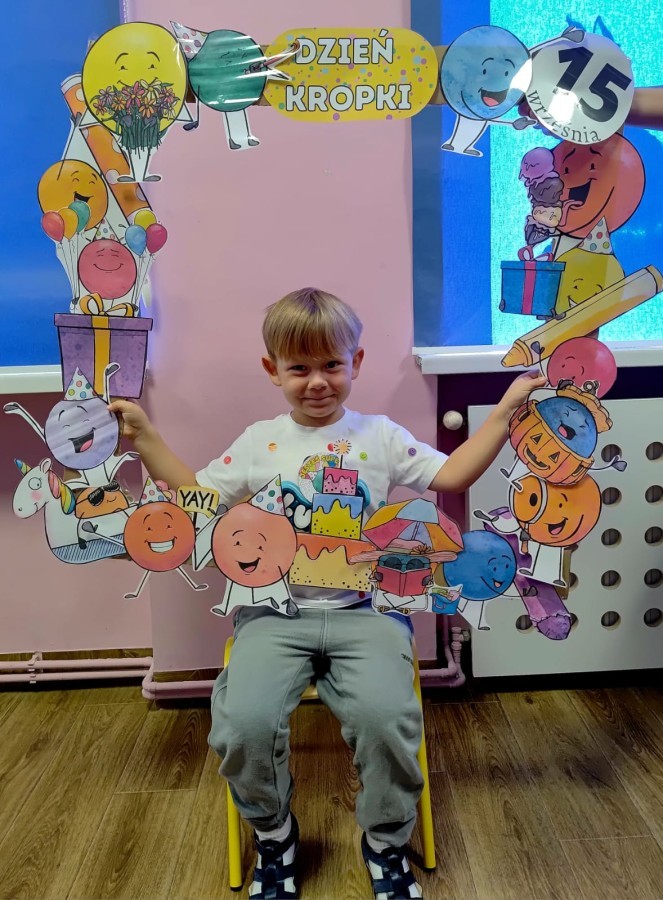 15.09 w grupie żabek świętowaliśmy Międzynarodowy Dzien Kropki. Dzieci poznały historię Vashti i jej niesamowitego talentu malarskiego, wykonaliśmy kropeczkowe ćwiczenia gimnastyczne, a na koniec pamiątkowe zdjęcia.