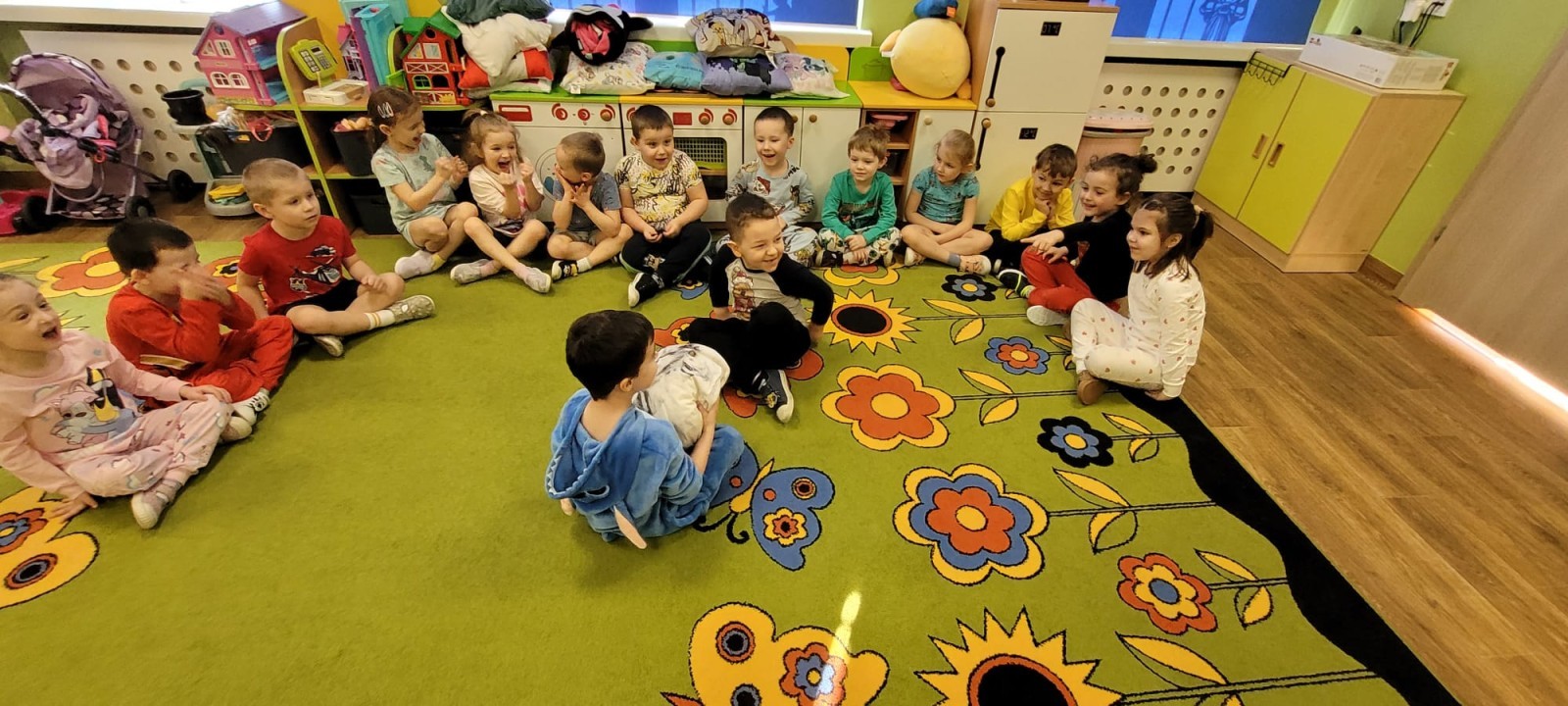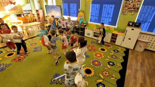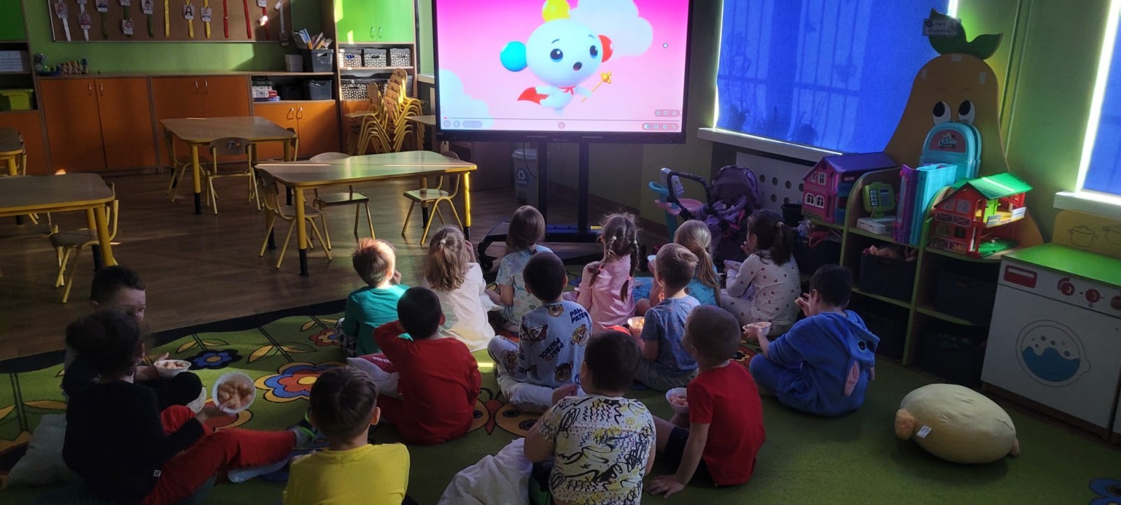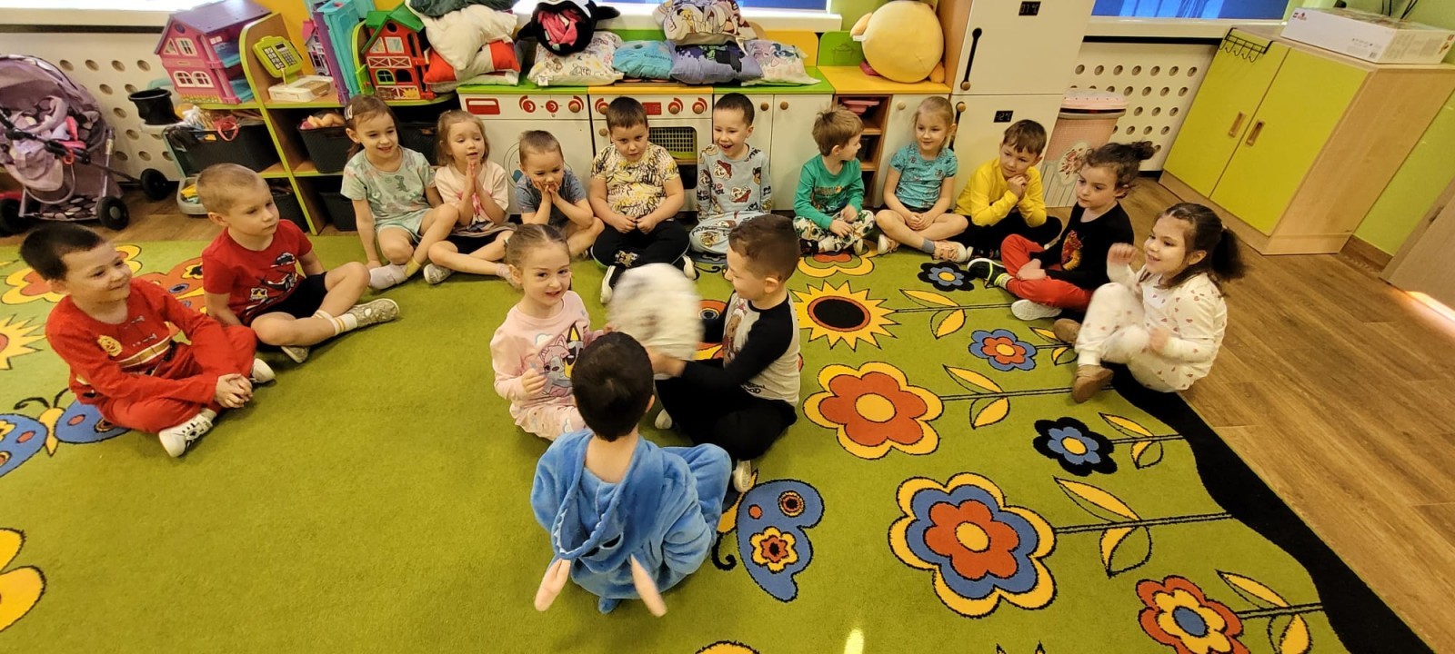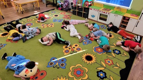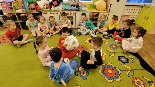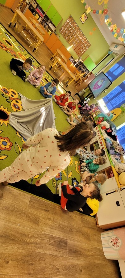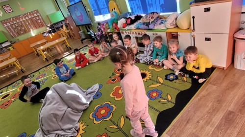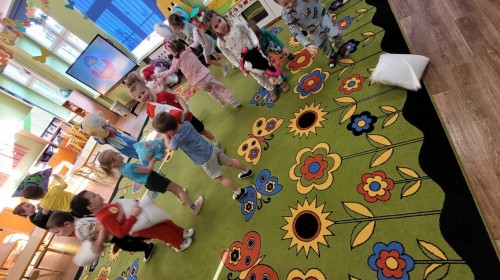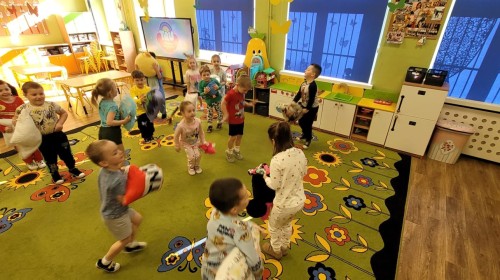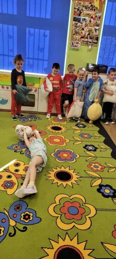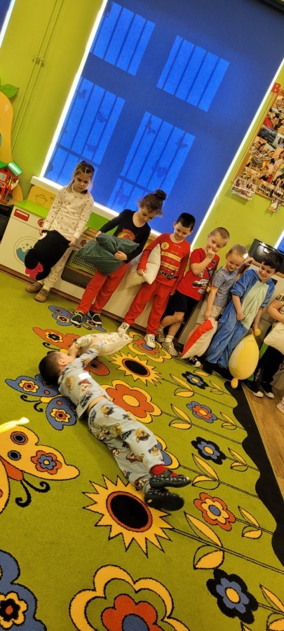 Dzień Piżamy w naszej grupie był pełen uśmiechu i dobrej zabawy. Dzieci zaraz po śniadaniu ubrały się w kolorowe, ulubione piżamy, dzięki czemu w przedszkolu zapanowała wyjątkowa, przytulna atmosfera. Podczas dnia nie zabrakło wspólnych zabaw, śmiechu oraz ciekawych aktywności. To był radosny czas integracji i wspaniałych chwil spędzonych razem.