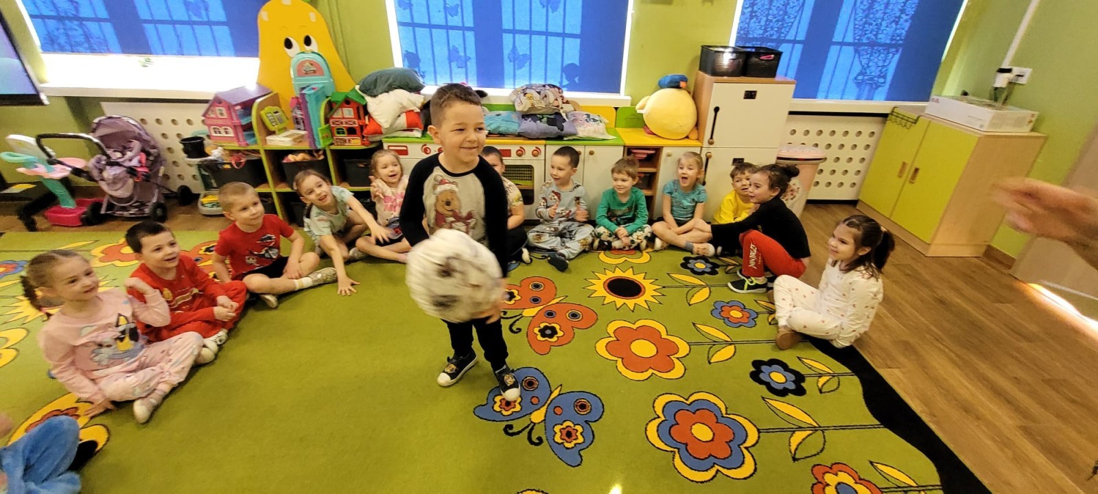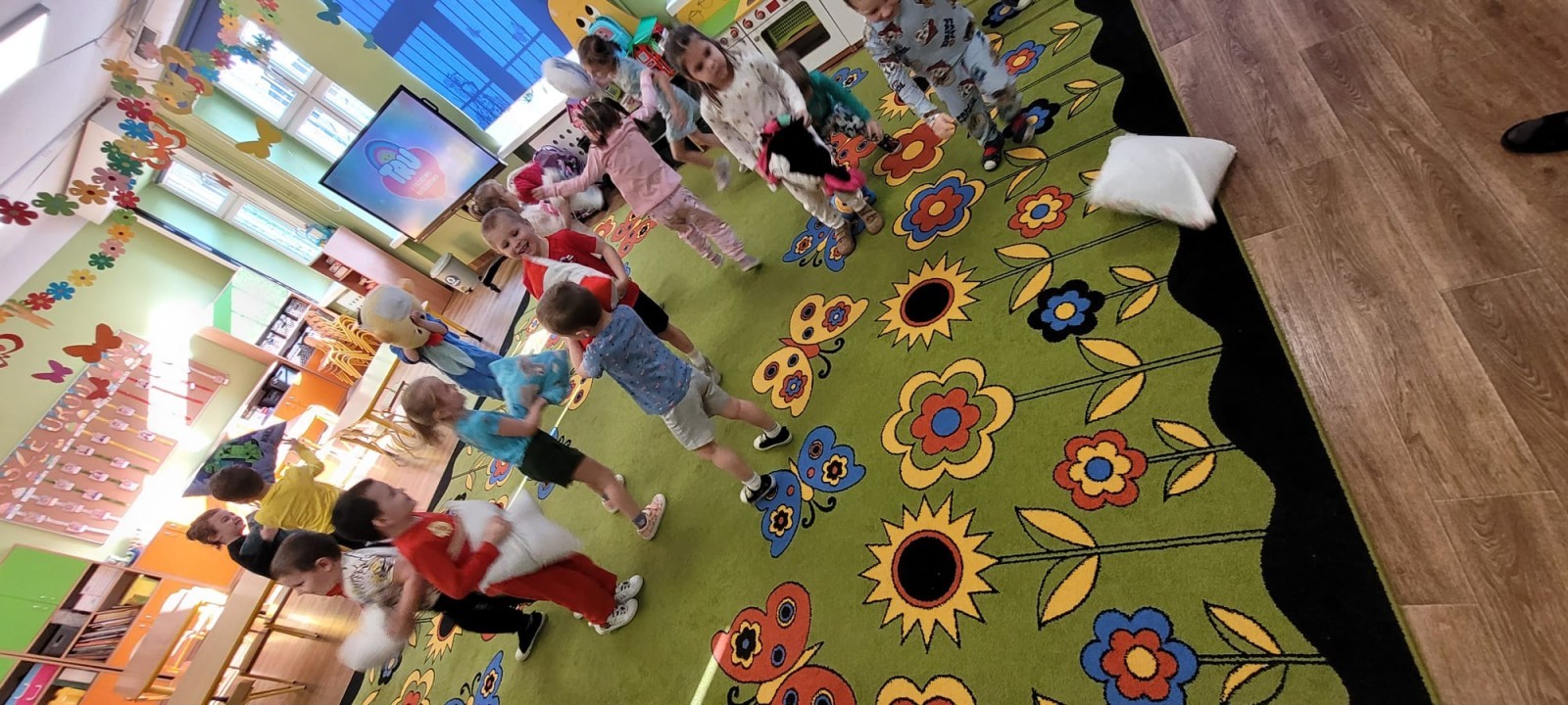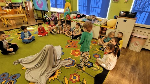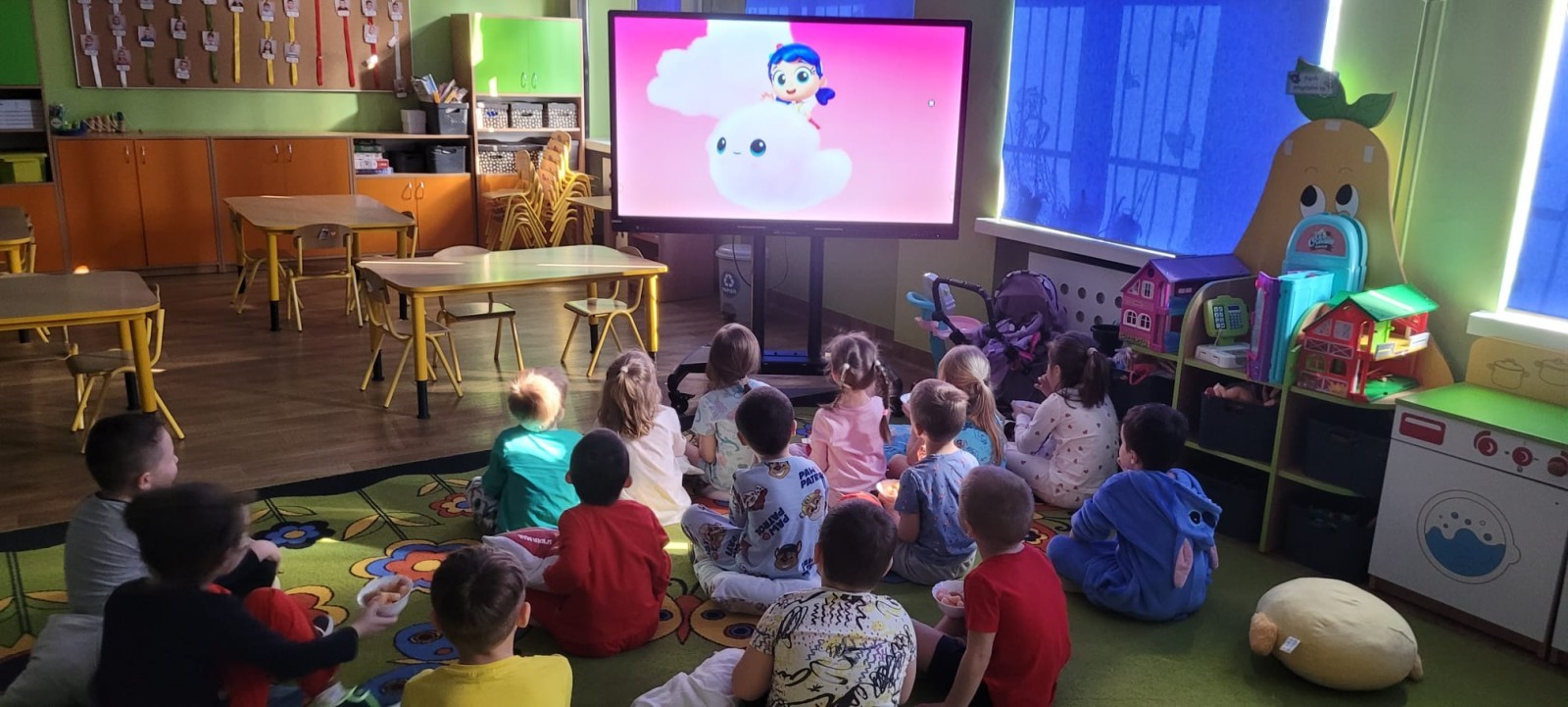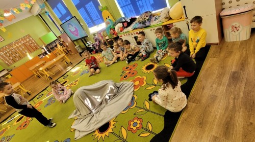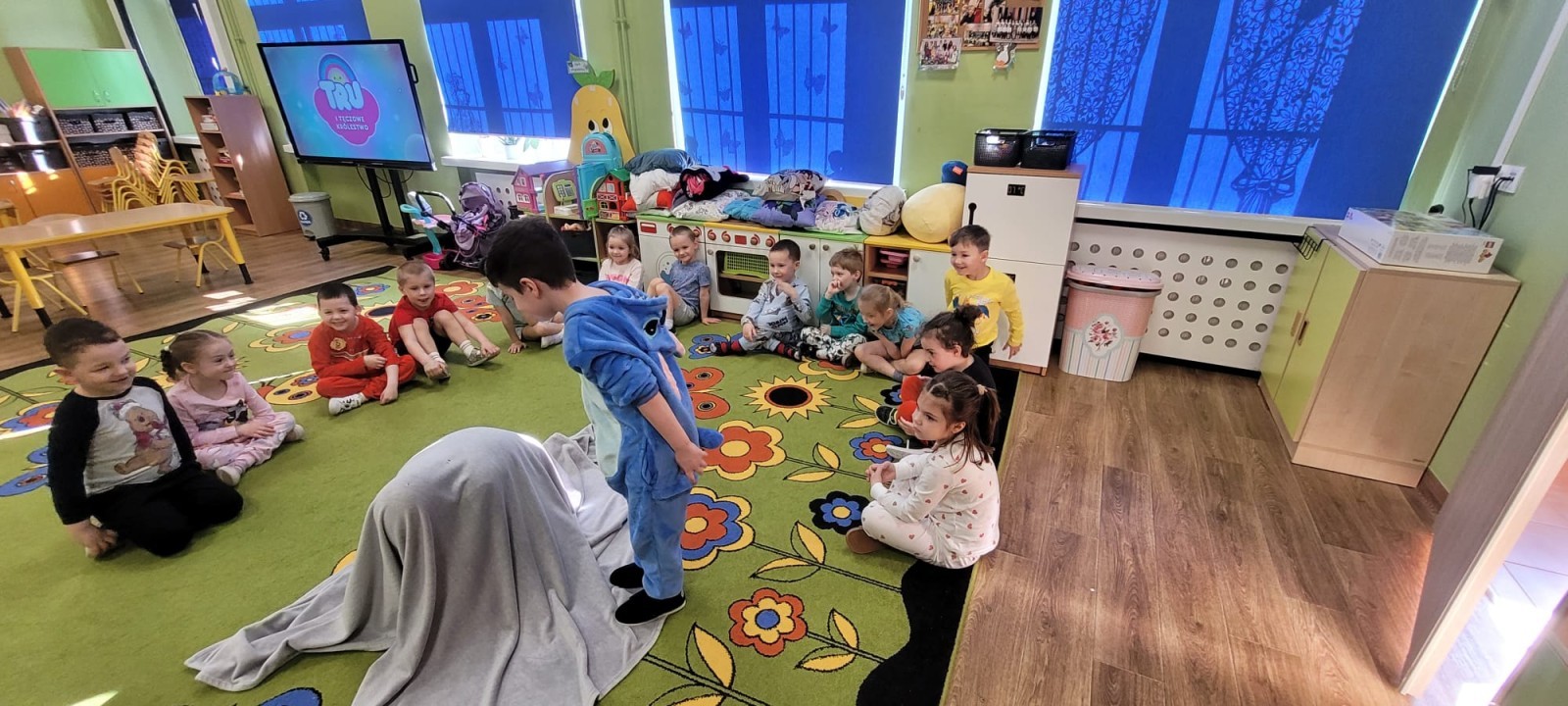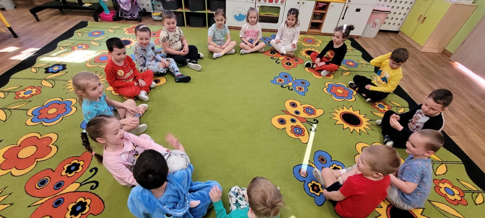Dzień Piżamy w naszej grupie był pełen uśmiechu i dobrej zabawy. Dzieci zaraz po śniadaniu ubrały się w kolorowe, ulubione piżamy, dzięki czemu w przedszkolu zapanowała wyjątkowa, przytulna atmosfera. Podczas dnia nie zabrakło wspólnych zabaw, śmiechu oraz ciekawych aktywności. To był radosny czas integracji i wspaniałych chwil spędzonych razem.