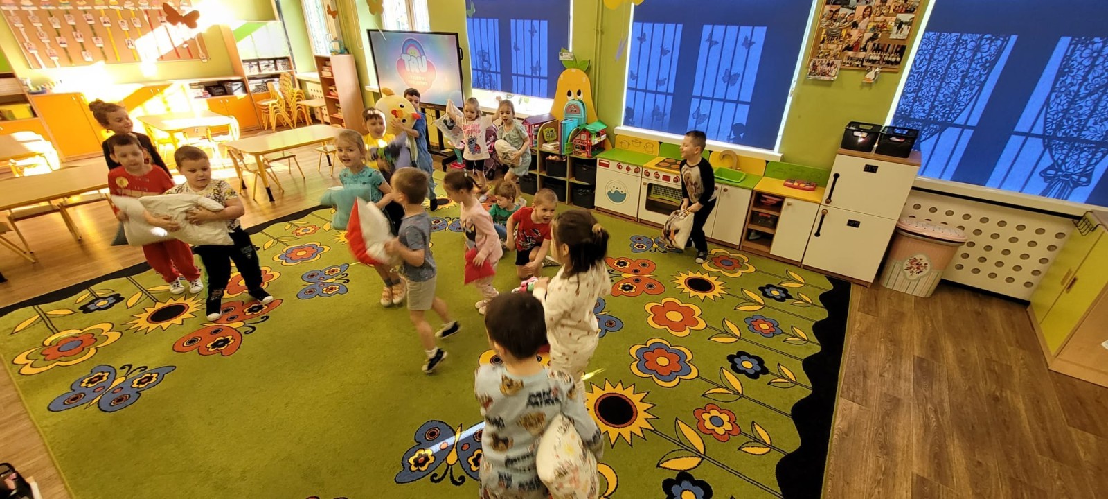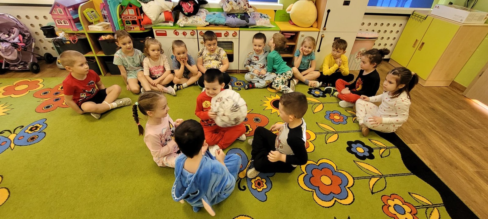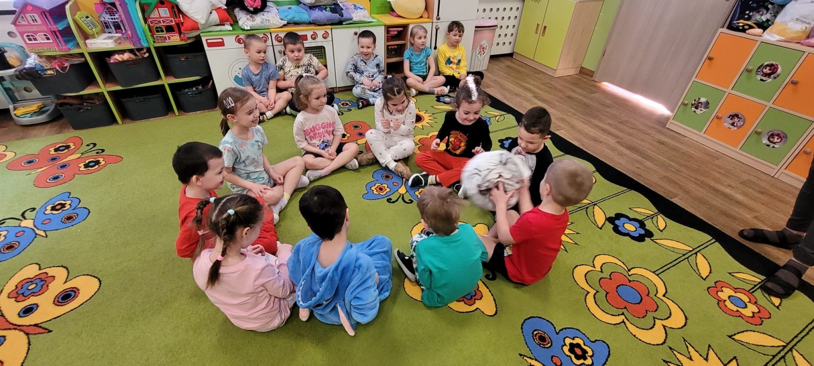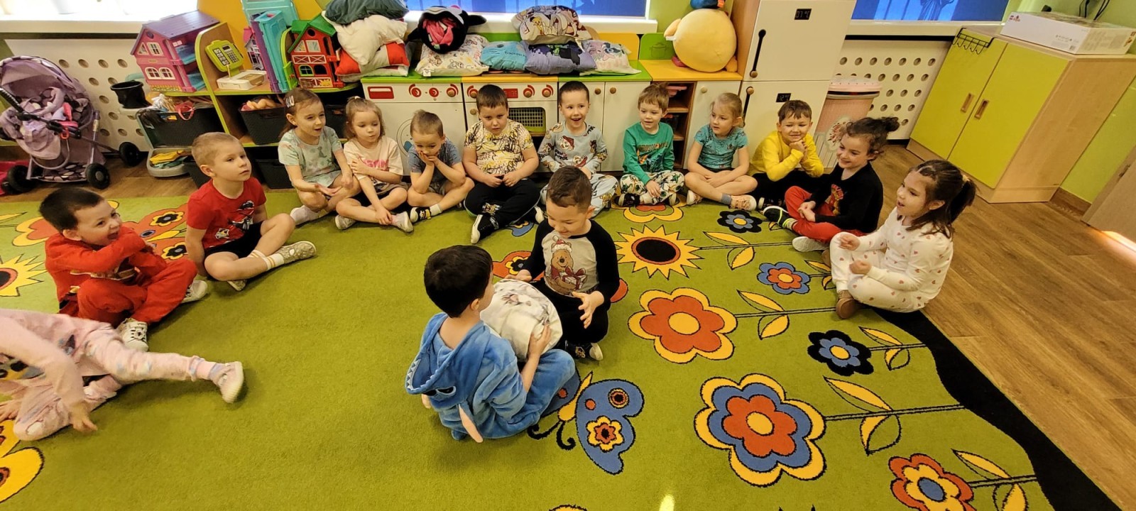 Dzień Piżamy w naszej grupie był pełen uśmiechu i dobrej zabawy. Dzieci zaraz po śniadaniu ubrały się w kolorowe, ulubione piżamy, dzięki czemu w przedszkolu zapanowała wyjątkowa, przytulna atmosfera. Podczas dnia nie zabrakło wspólnych zabaw, śmiechu oraz ciekawych aktywności. To był radosny czas integracji i wspaniałych chwil spędzonych razem.