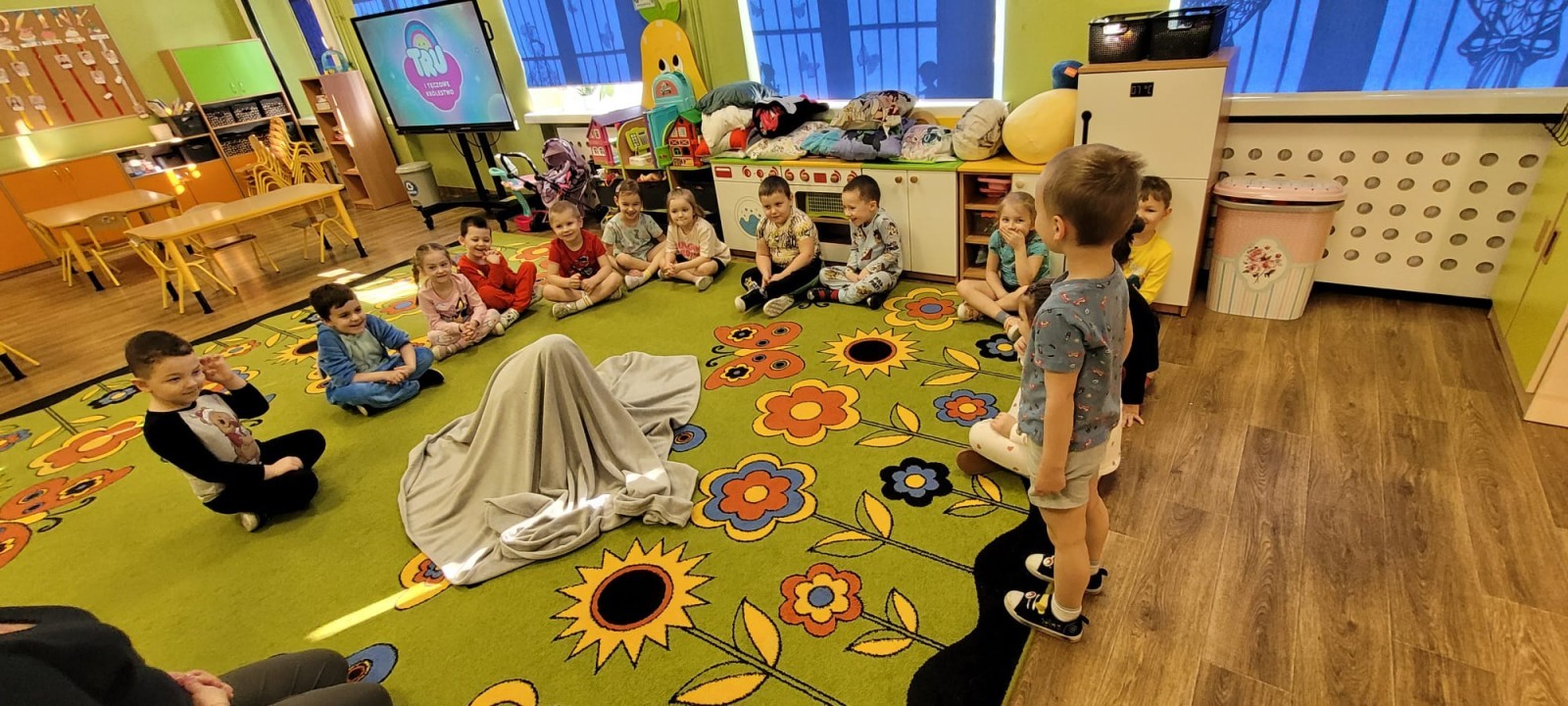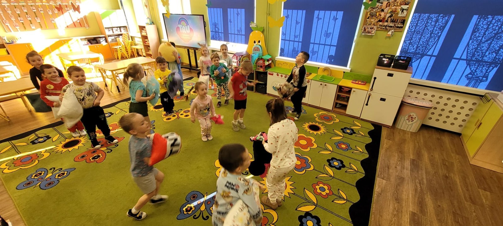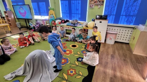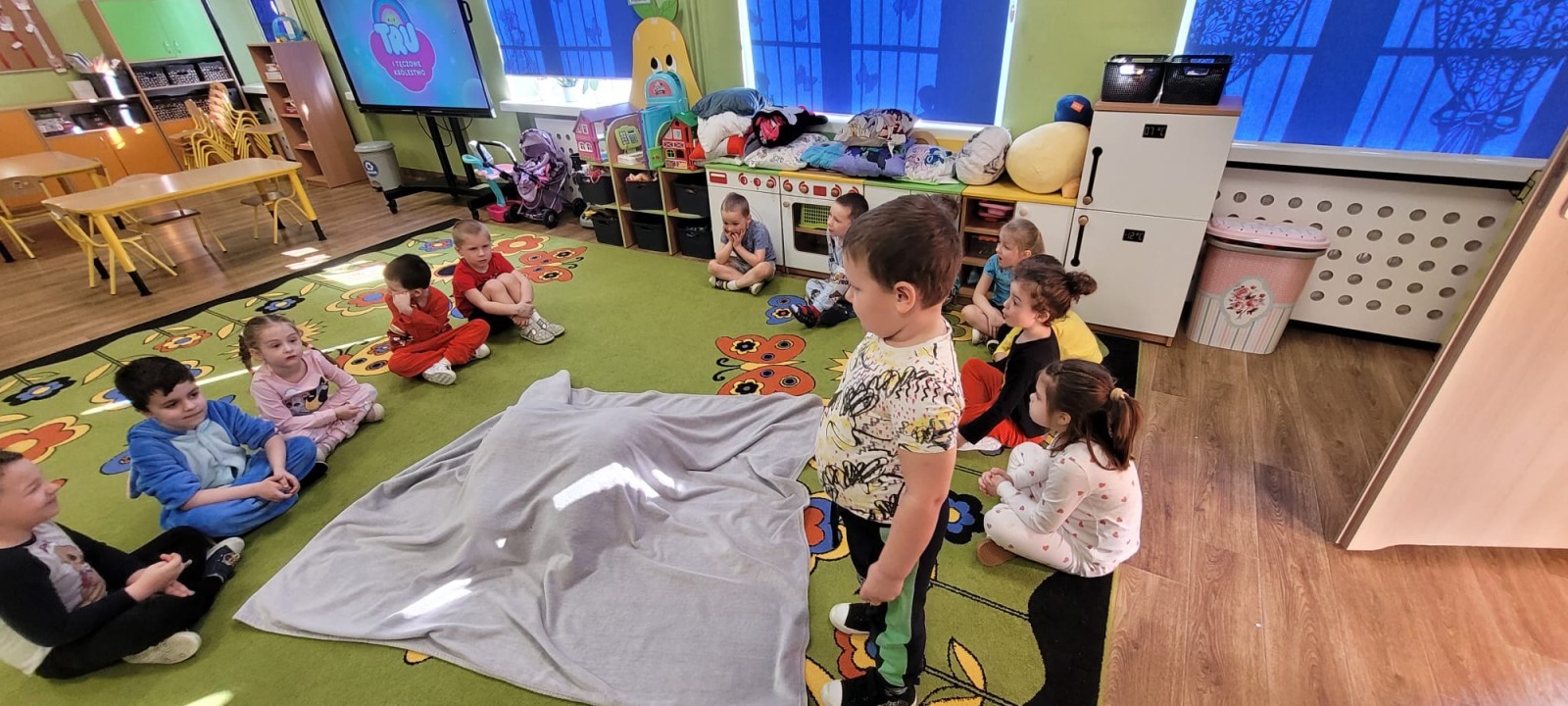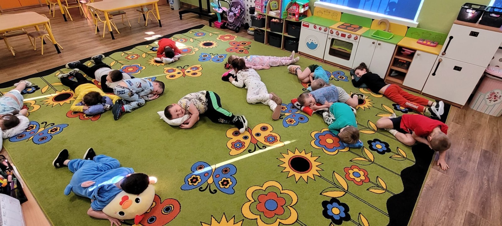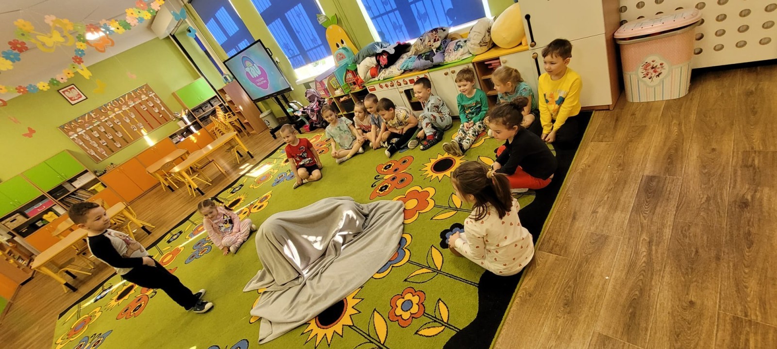 Dzień Piżamy w naszej grupie był pełen uśmiechu i dobrej zabawy. Dzieci zaraz po śniadaniu ubrały się w kolorowe, ulubione piżamy, dzięki czemu w przedszkolu zapanowała wyjątkowa, przytulna atmosfera. Podczas dnia nie zabrakło wspólnych zabaw, śmiechu oraz ciekawych aktywności. To był radosny czas integracji i wspaniałych chwil spędzonych razem.