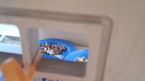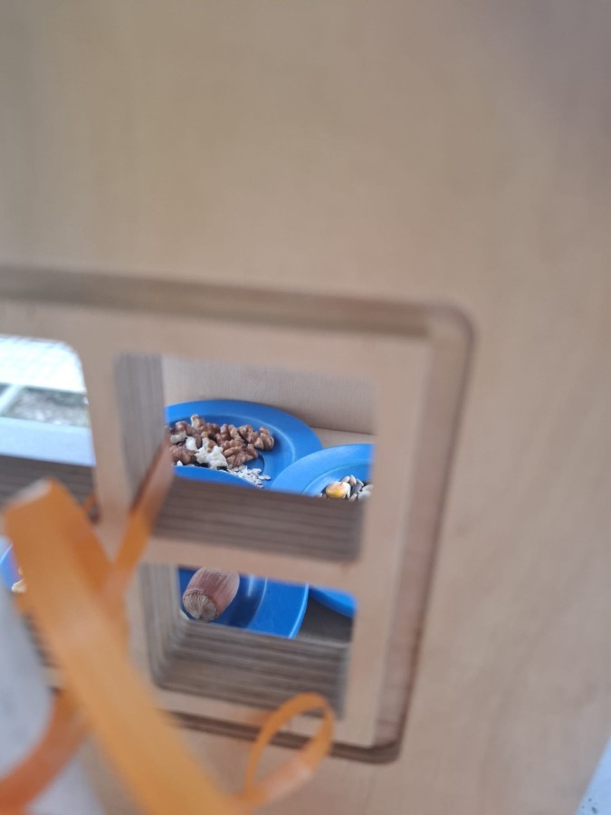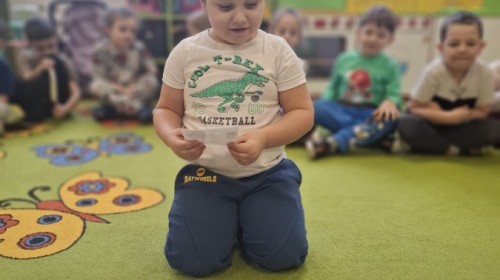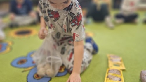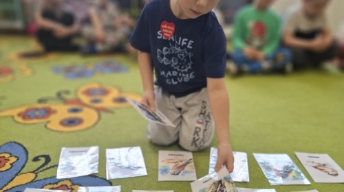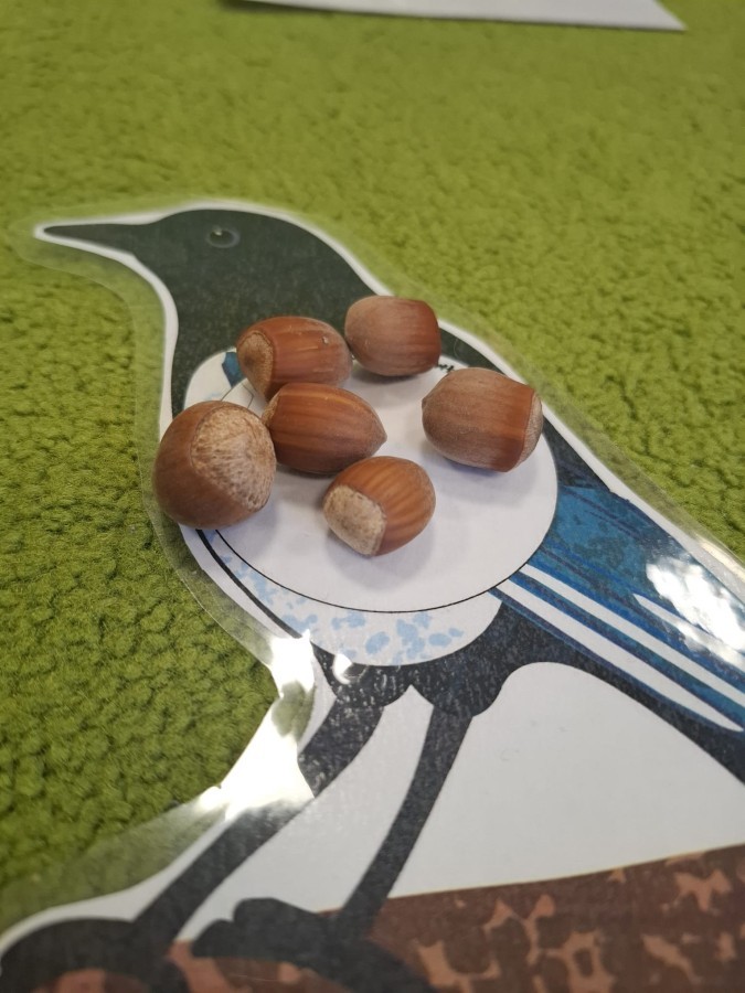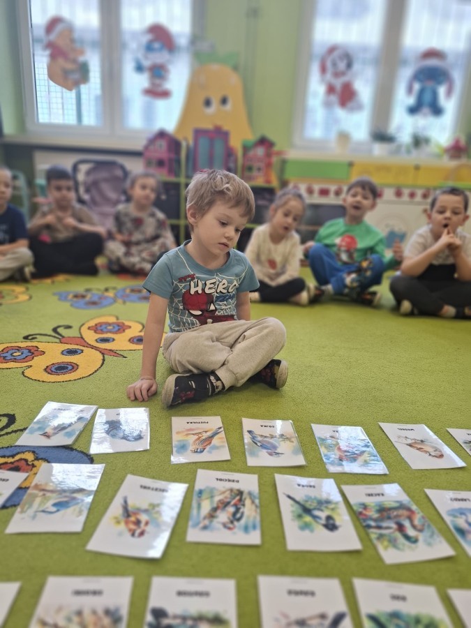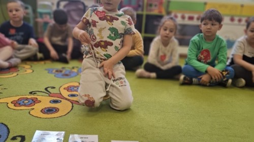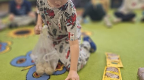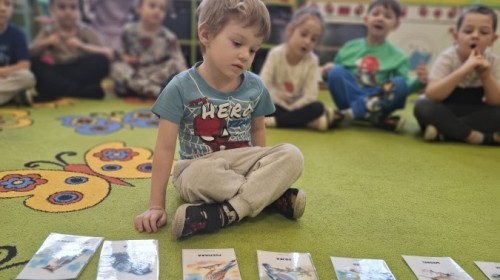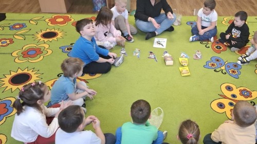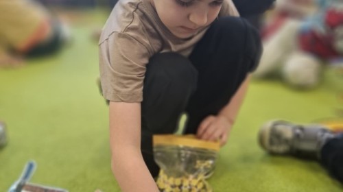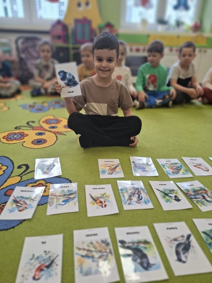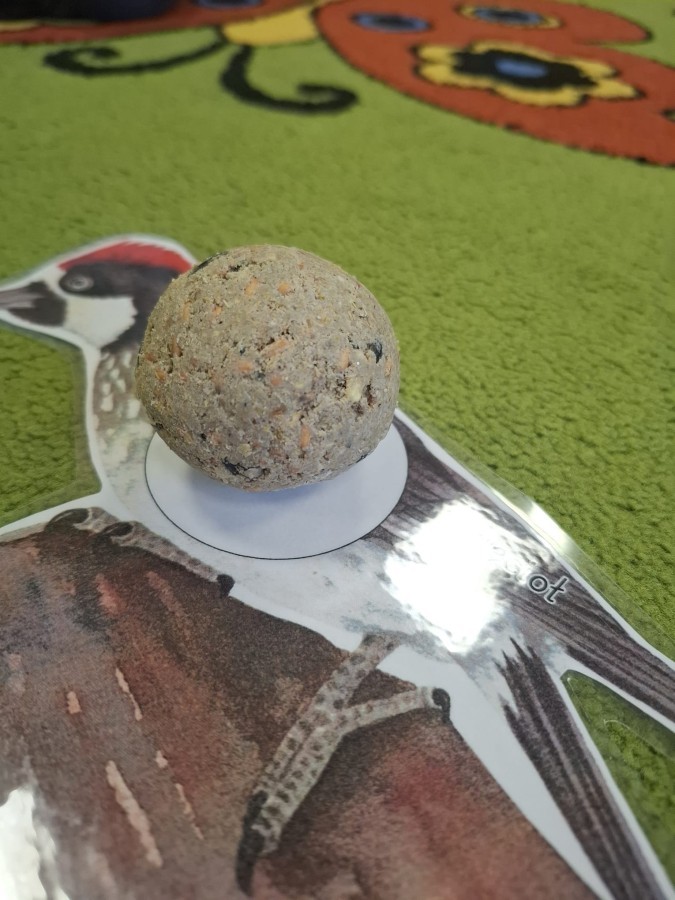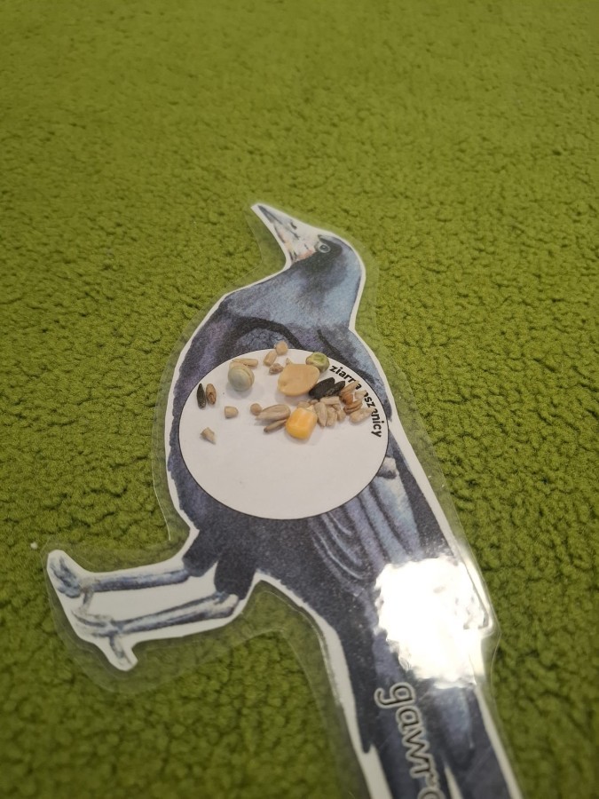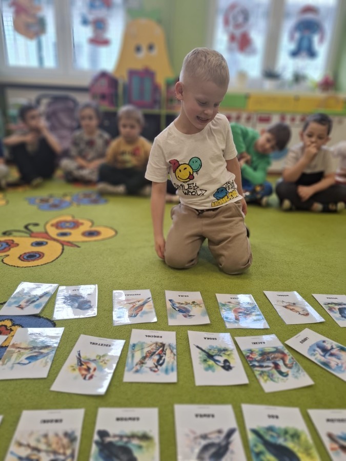 Dzieci przyniosły pokarm dla ptaszków, między innymi nasiona zbóż, słonecznika, gotowe mieszanki kule, płatki owsiane, orzechy, suszone owoce. Przedszkolaki dowiedziały się, co dany ptak lubi jeść najbardziej. Następnie kilkoro dzieci nasypało pokarm do karmnika. Dzieci będą obserwować karmnik i dosypywać jedzenie.