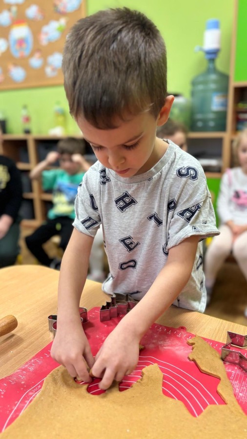 Mąka w powietrzu, cynamon w nosie i uśmiechy od ucha do ucha! Tak wyglądało pieczenie pierników na warsztaty z rodzicami. Dzieci z zapałem wałkowały, wycinały i ozdabiały pierniki!