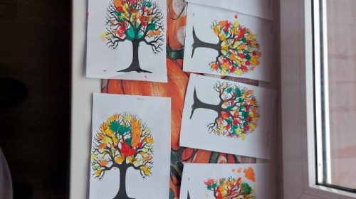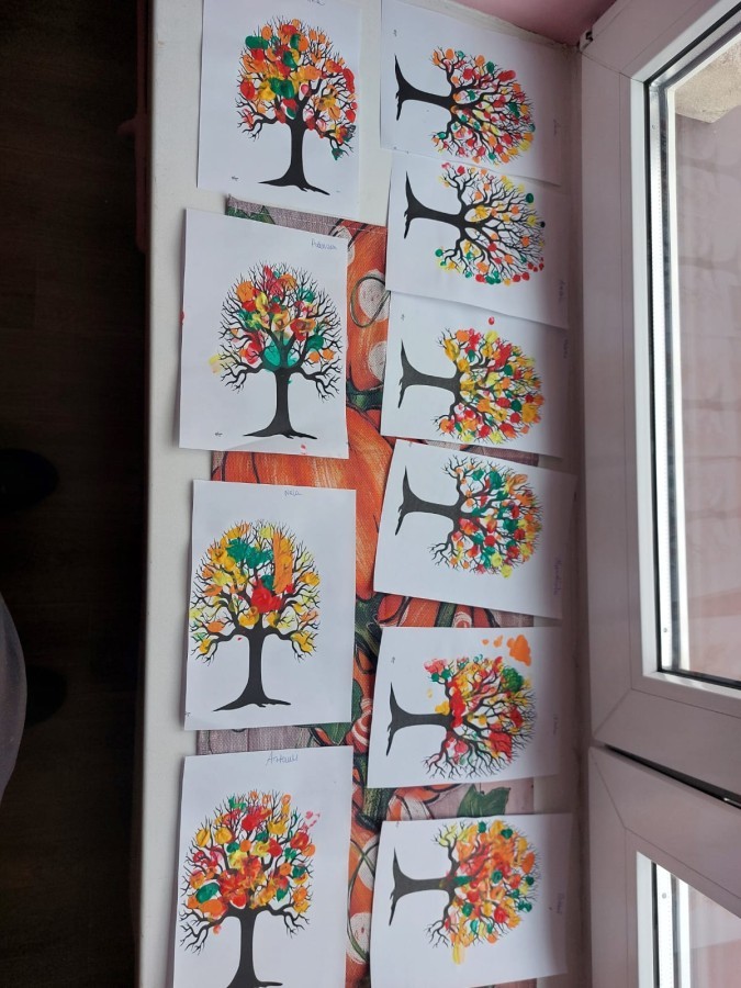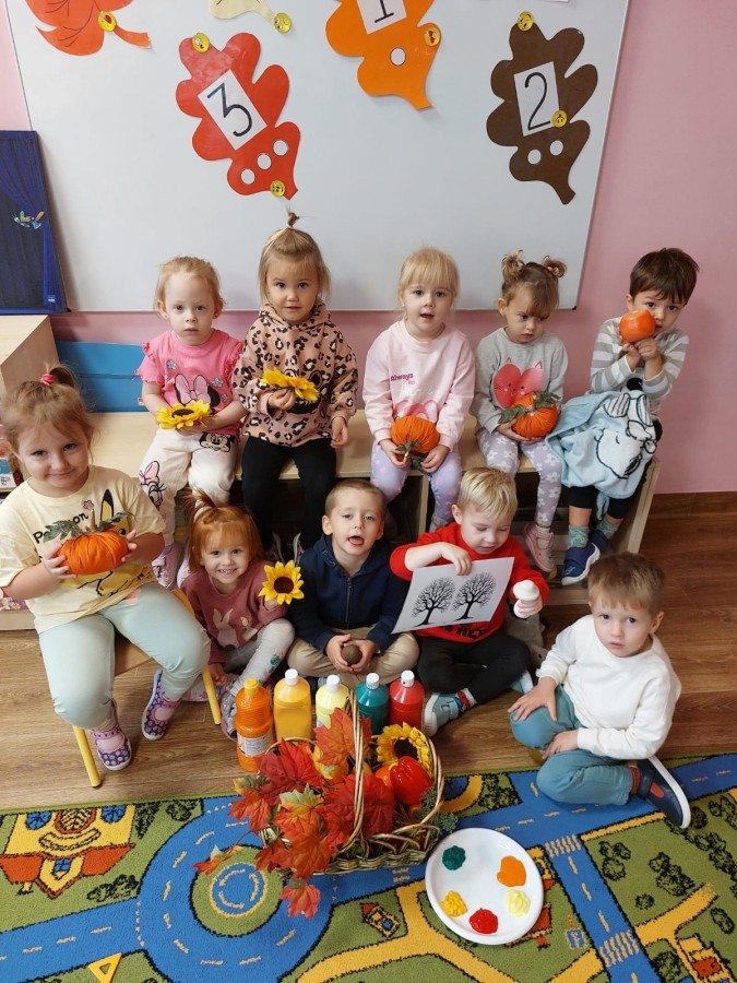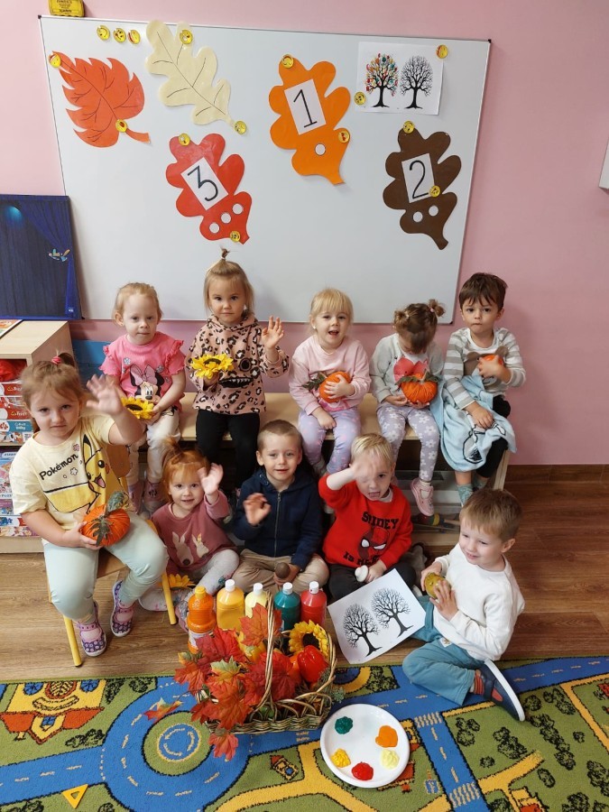 I. DZIEŃ JESIENI - Grupa Żabki słuchała opowiadania o kolorach Pani Jesieni oraz poznała piosenkę o żółtym liściu. Na zakończenie przedszkolaki wykonały pracę plastyczną wykorzystując jesienne barwy.