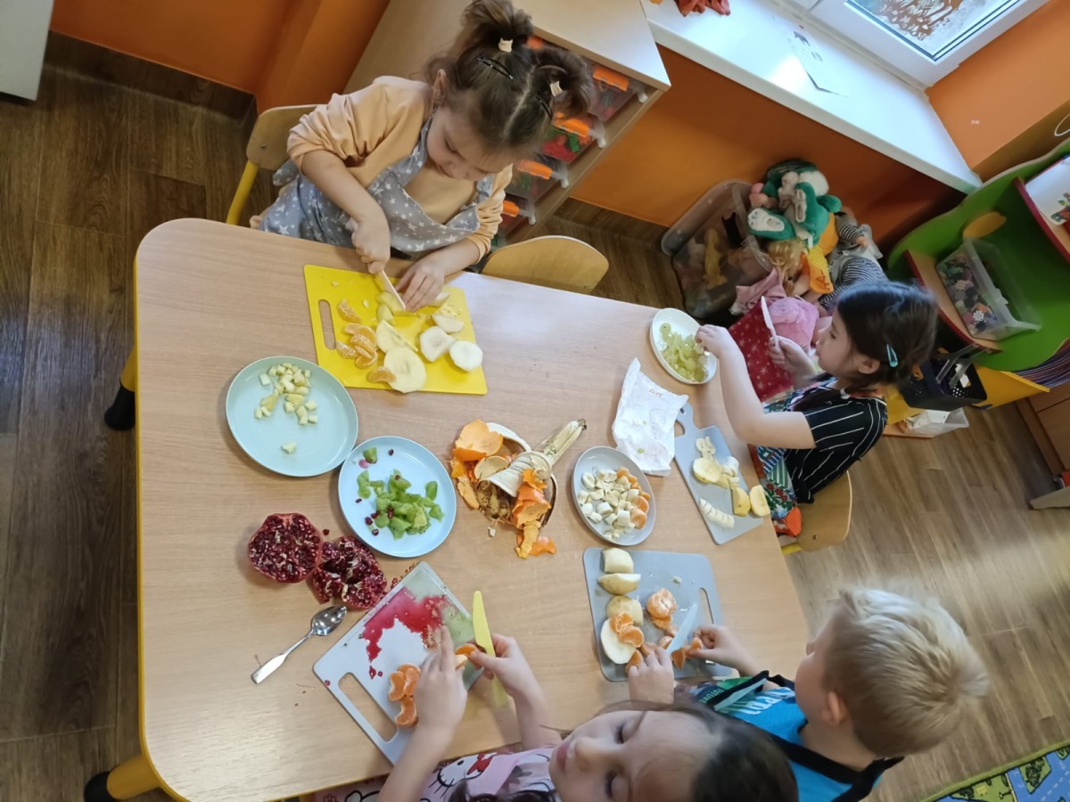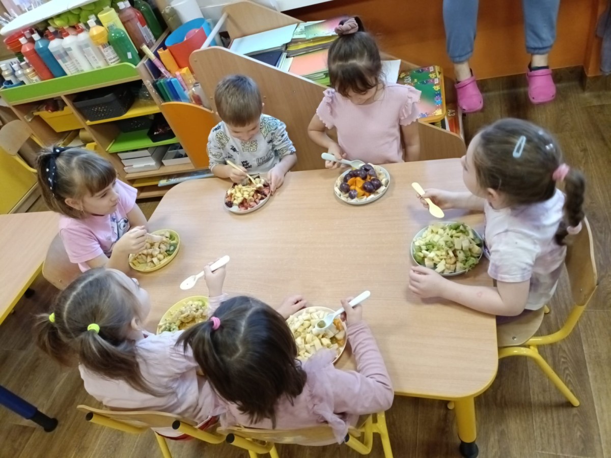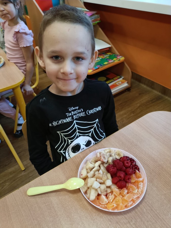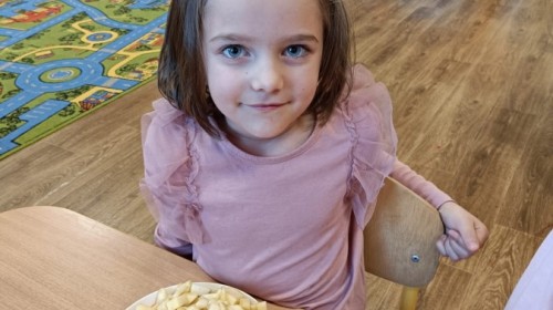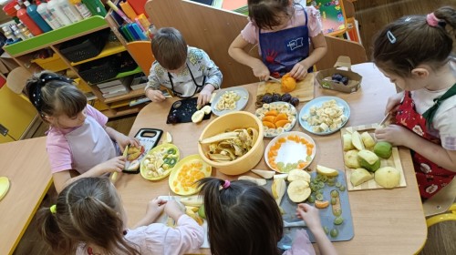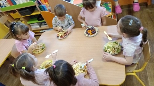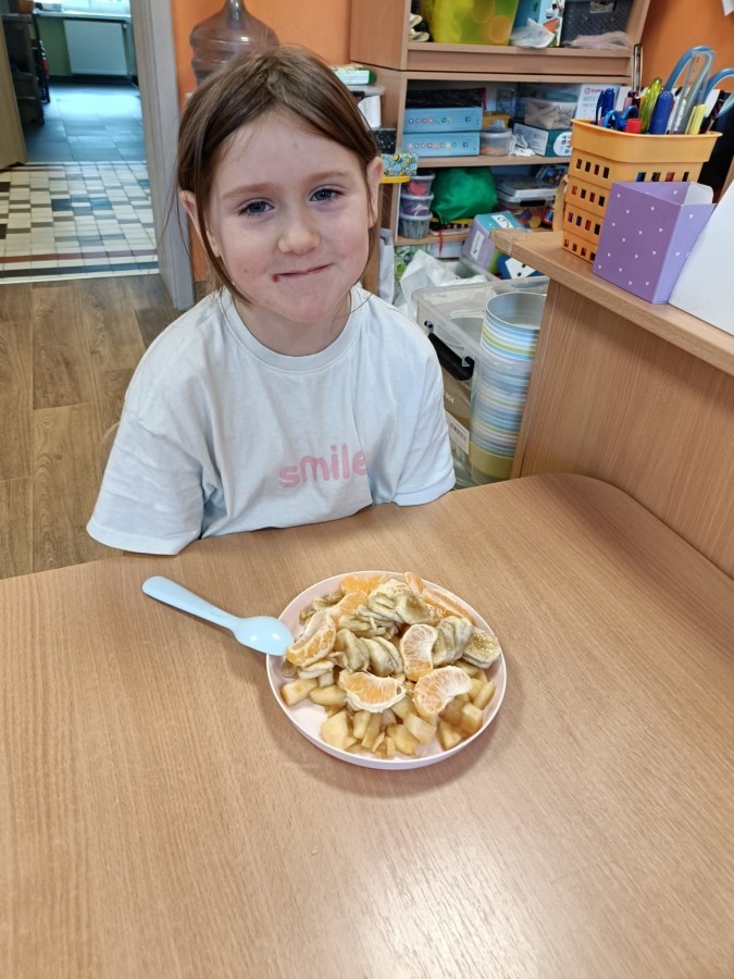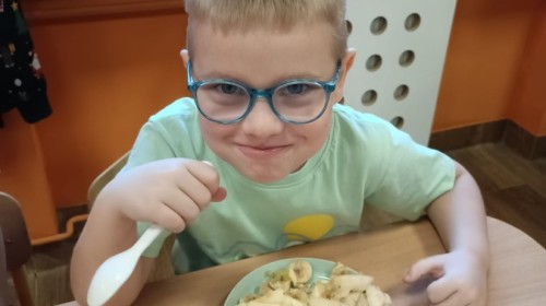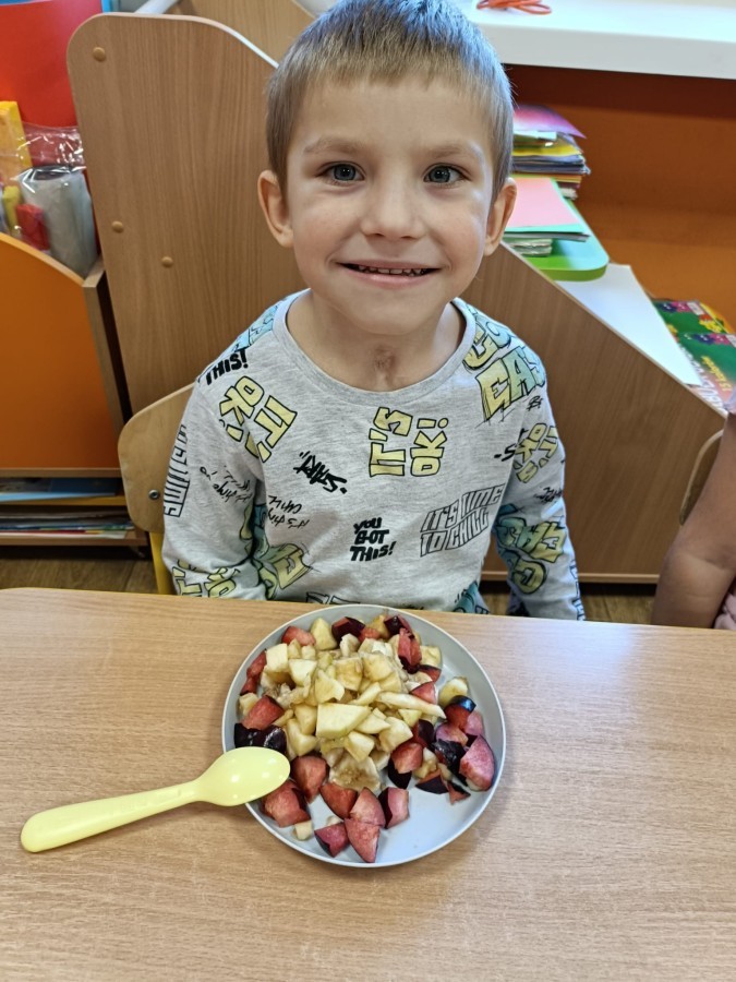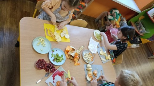 Dzisiaj dzieci samodzielnie przygotowały sałatkę owocową ze swoich ulubionych owoców. Powstały pyszne, różnorodne, kolorowe i pełne witamin sałatki, które dzieci zjadały z wielką przyjemnością. Największą radość dla przedszkolaków niewątpliwie stanowiło samodzielne przygotowanie stanowiska pracy i własnoręczne krojenie owoców i oczywiście sama degustacja.