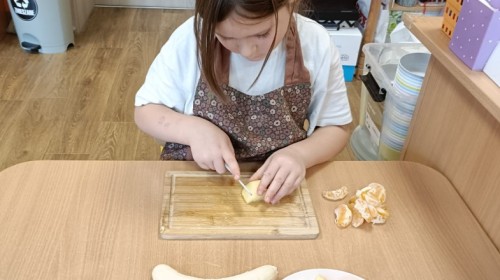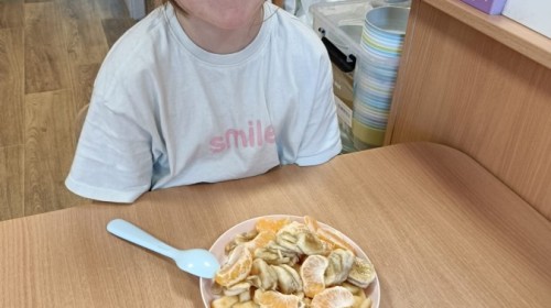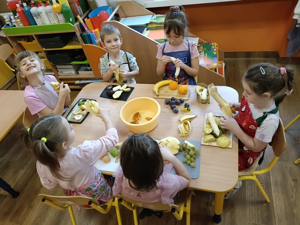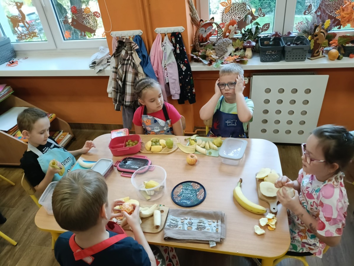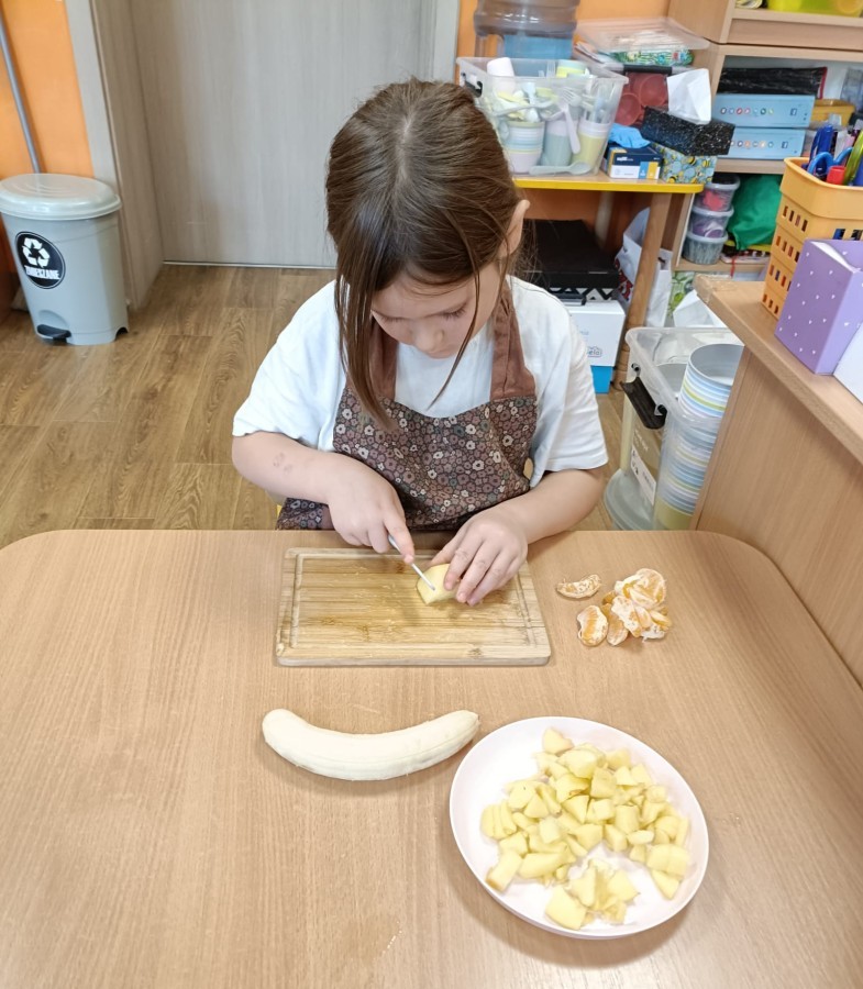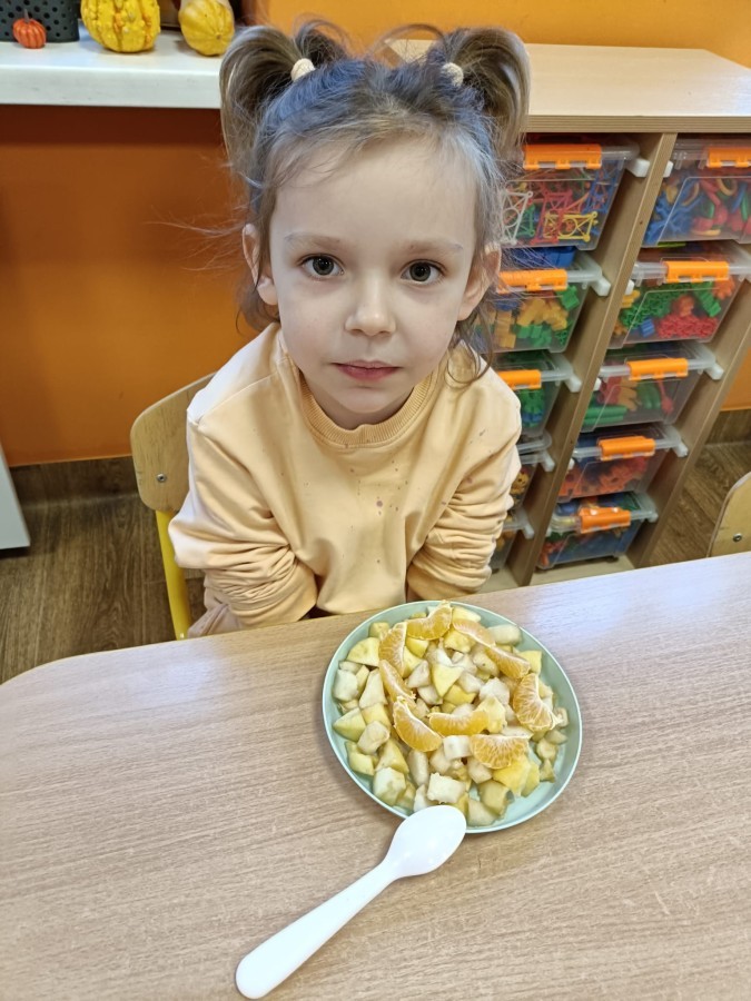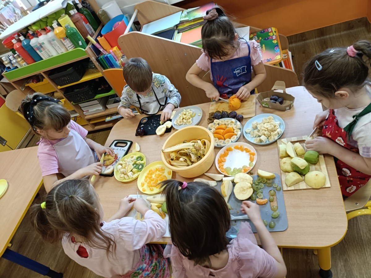 Dzisiaj dzieci samodzielnie przygotowały sałatkę owocową ze swoich ulubionych owoców. Powstały pyszne, różnorodne, kolorowe i pełne witamin sałatki, które dzieci zjadały z wielką przyjemnością. Największą radość dla przedszkolaków niewątpliwie stanowiło samodzielne przygotowanie stanowiska pracy i własnoręczne krojenie owoców i oczywiście sama degustacja.