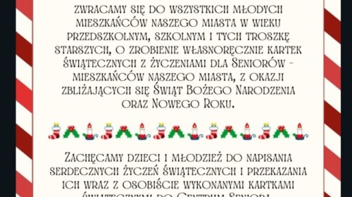 Nasze przedszkole wzięło udział w akcji organizowanej przez Urząd Miasta - Centrum Seniora - tworzenie kartek świątecznych do przekazania dla Seniorów.