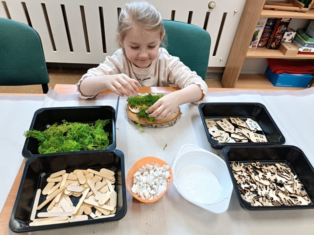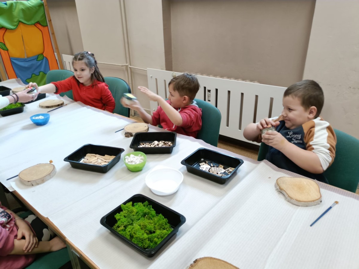 Największą atrakcją warsztatów było wykonanie własnej pracy plastycznej z naturalnych materiałów przyrody. Warsztaty sprawiły dzieciom wiele radości i były doskonałą okazją do rozwijania kreatywności, poznawania przyrody oraz spędzenia czasu w twórczej i miłej atmosferze.