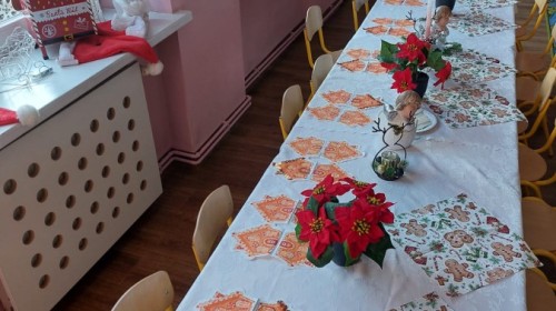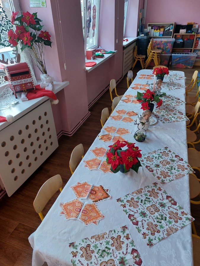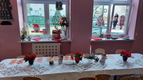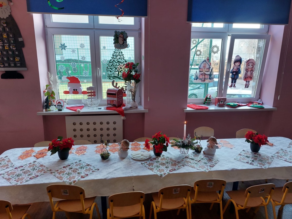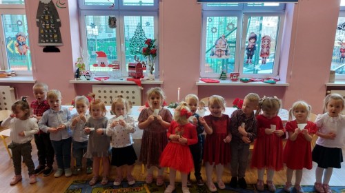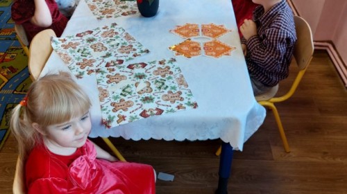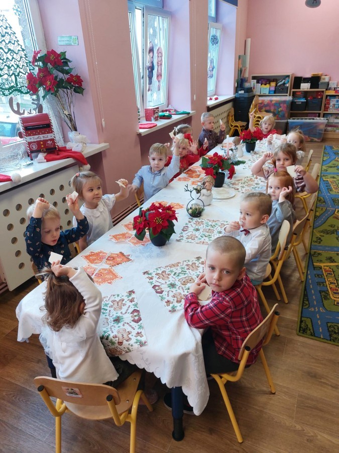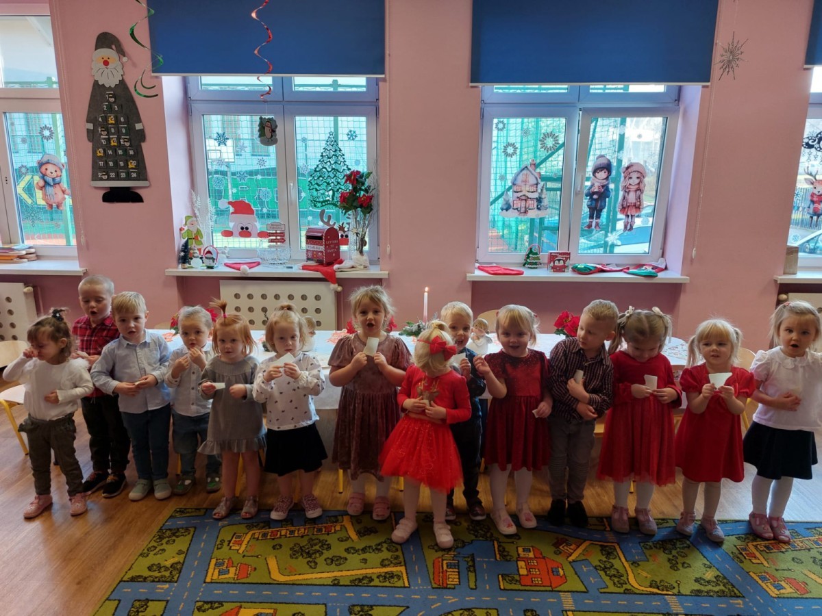 Uroczysty wigilijny obiad w grupie Żabek. Przy melodii kolęd wspólnie złożyliśmy sobie życzenia Bożonarodzeniowe oraz smakowaliśmy tradycyjne potrawy wigilijne, które bardzo smakowały naszym maluszkom.
