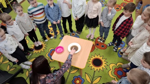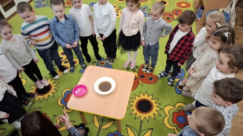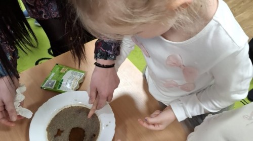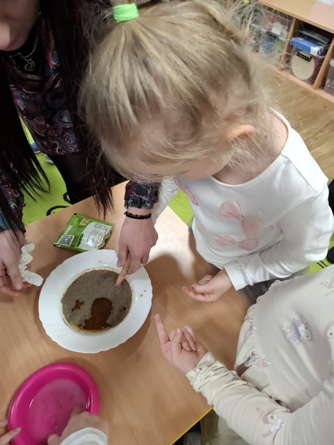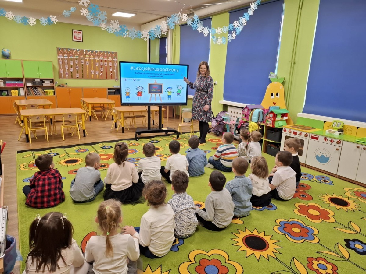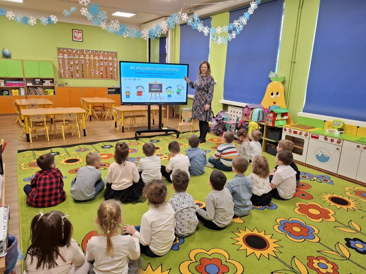 Na pierwszych zajęciach, dzieci dowiedziały się jak rozprzestrzeniają się wirusy i bakterie, mogą być przyczyną groźnych chorób, dlaczego są niebezpieczne, jak dochodzi do infekcji. Dzieci zostały uświadomione, aby pozbyć się wirusów i bakterii w dużej mierzy należy dbać o higienę mycia rąk. Zaznaczyliśmy, jak poprawnie i kiedy należy myć ręce. Wykonaliśmy również doświadczenie, którego celem było wyjaśnienie, jak mydło usuwa brud i zarazki.