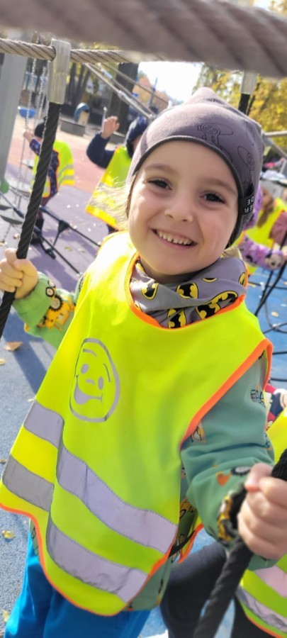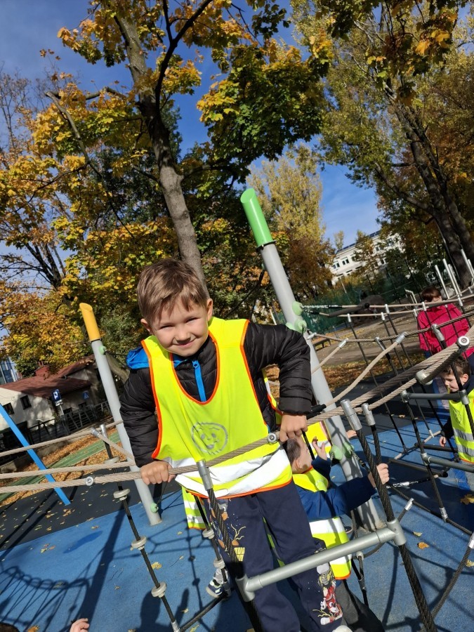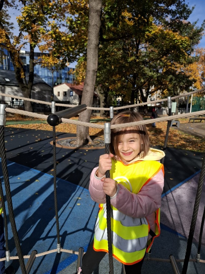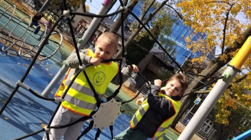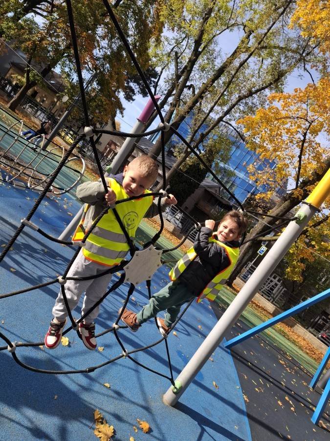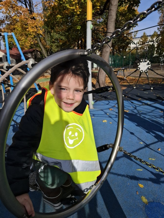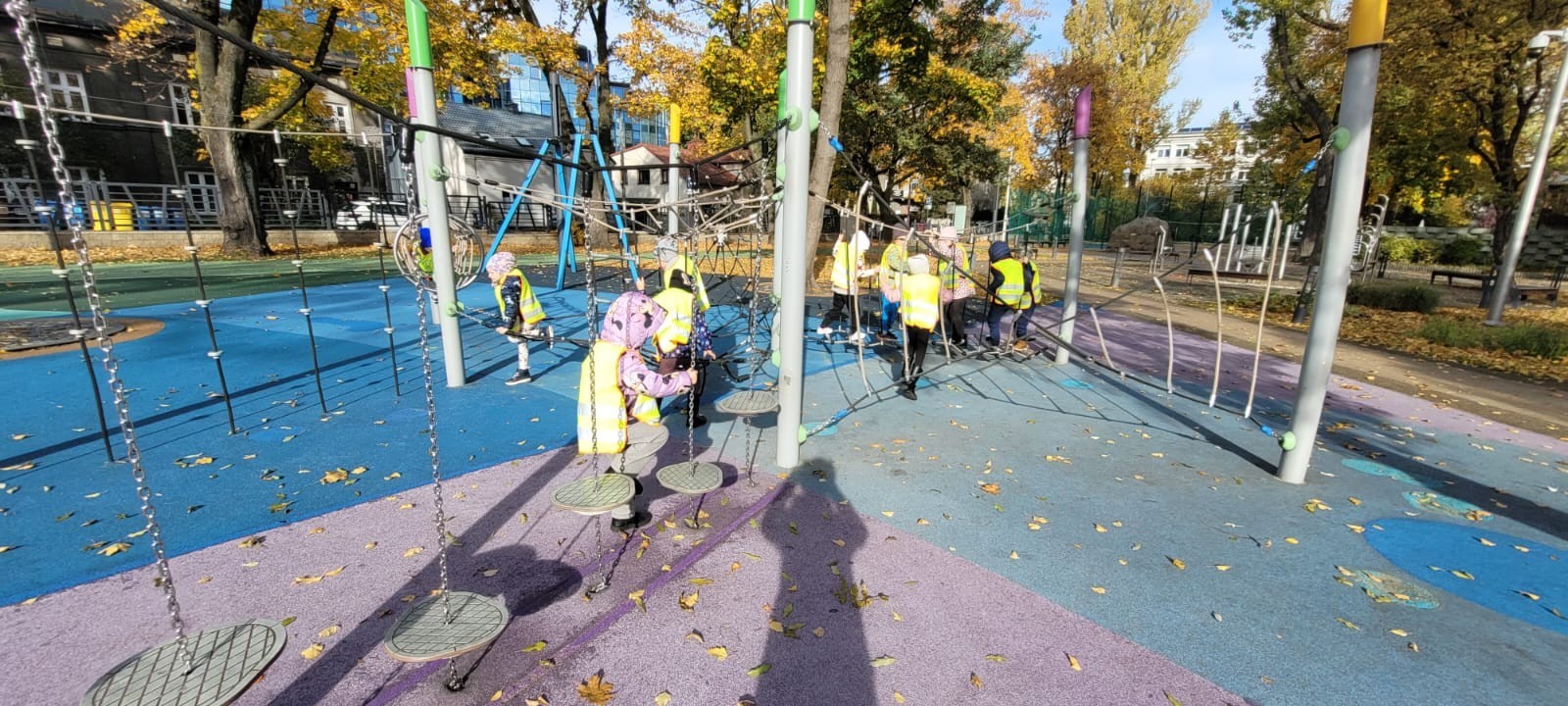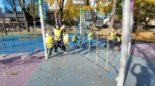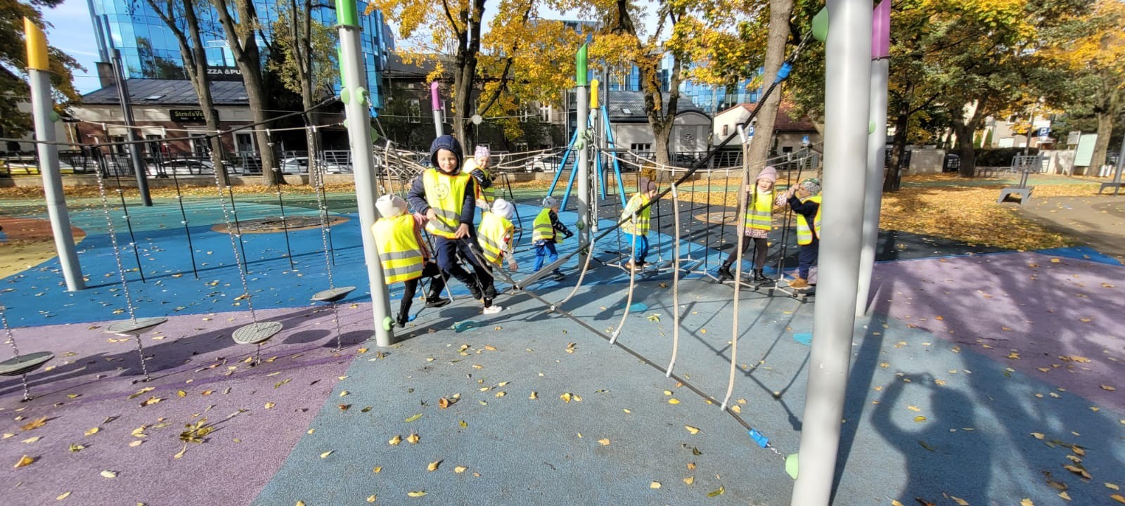 Korzystając z uroków babiego lata, wybraliśmy się na spacer. Zatrzymaliśmy się na placu zabaw Szósty Zmysł, gdzie sprawdzaliśmy oznaki jesieni: oddychaliśmy jesienią – zapachem szeleszczących liści i ciepłego powietrza. Po intensywnym poranku, wykorzystaliśmy okazję, aby przeczytać książki o tematyce jesiennej w naszej salce znajdującej się na placu zabaw.