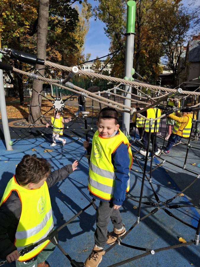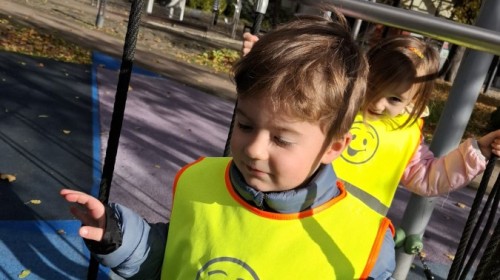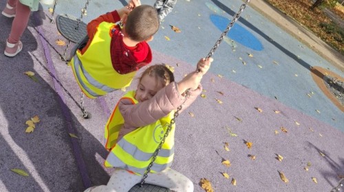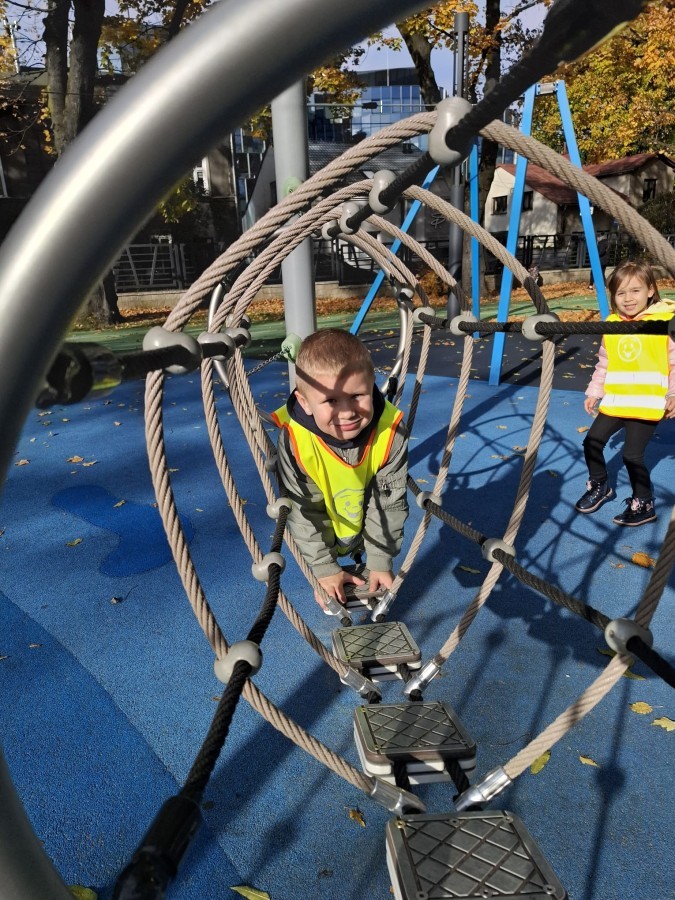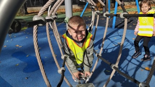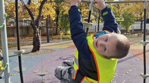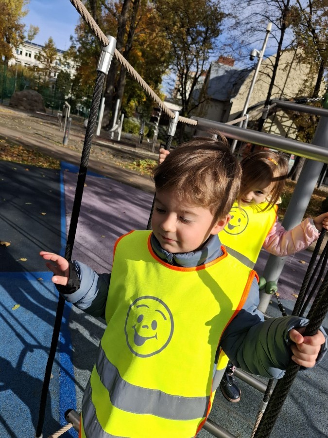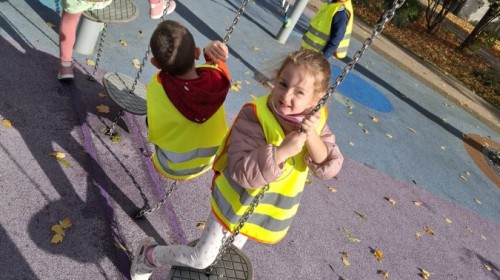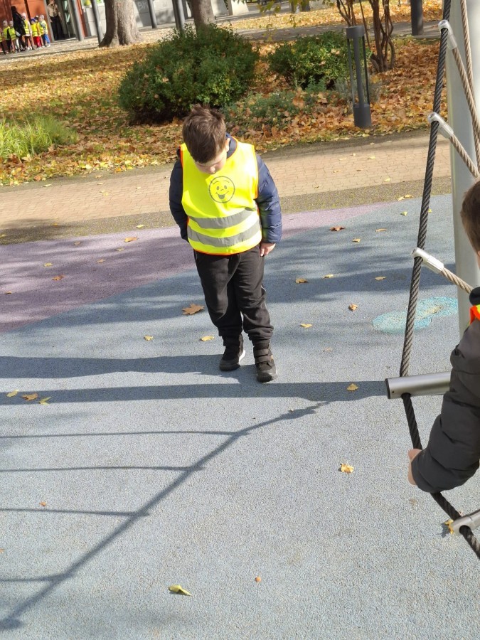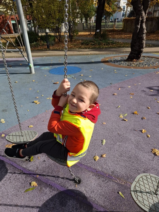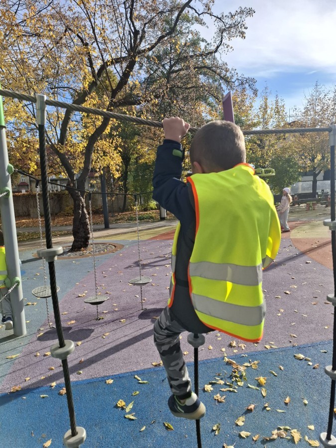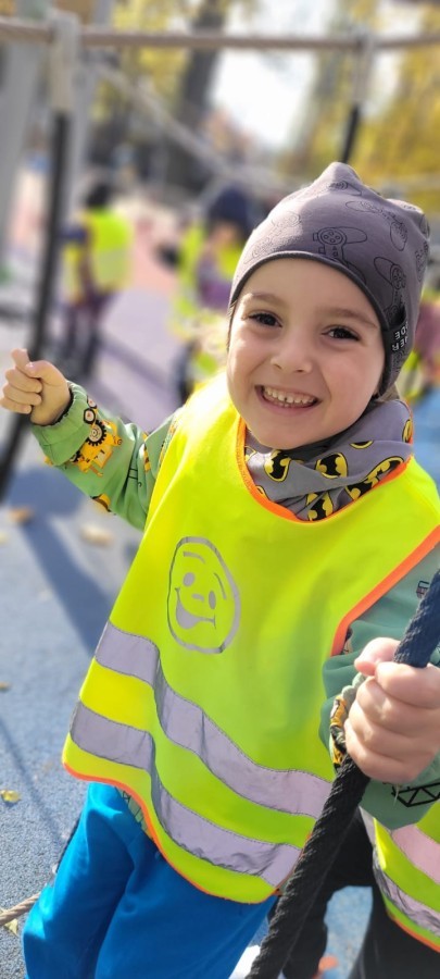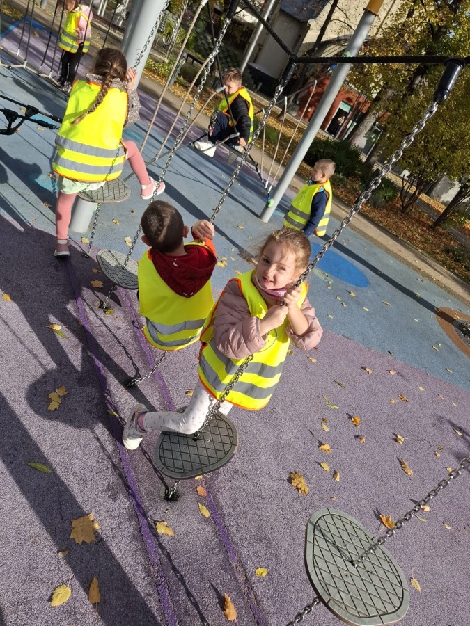 Korzystając z uroków babiego lata, wybraliśmy się na spacer. Zatrzymaliśmy się na placu zabaw Szósty Zmysł, gdzie sprawdzaliśmy oznaki jesieni: oddychaliśmy jesienią – zapachem szeleszczących liści i ciepłego powietrza. Po intensywnym poranku, wykorzystaliśmy okazję, aby przeczytać książki o tematyce jesiennej w naszej salce znajdującej się na placu zabaw.