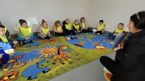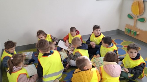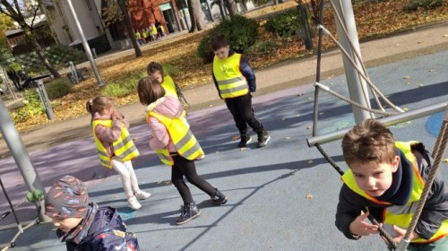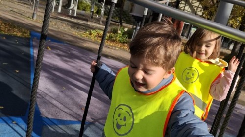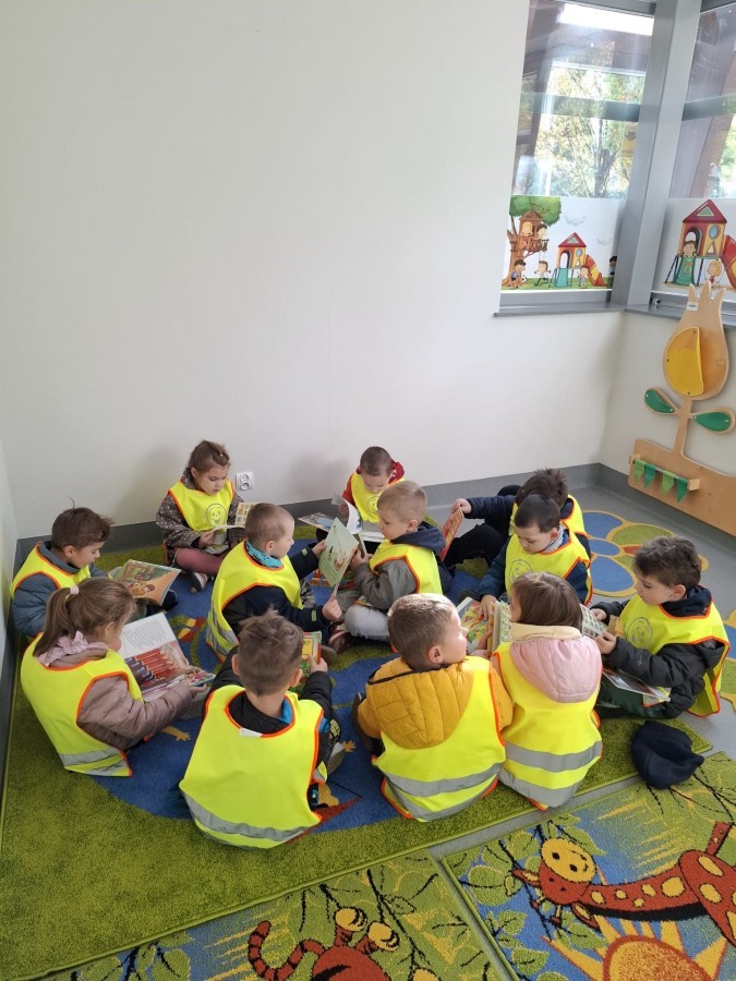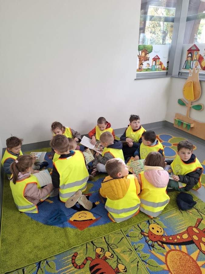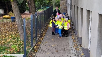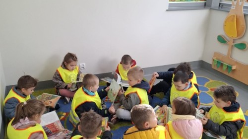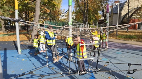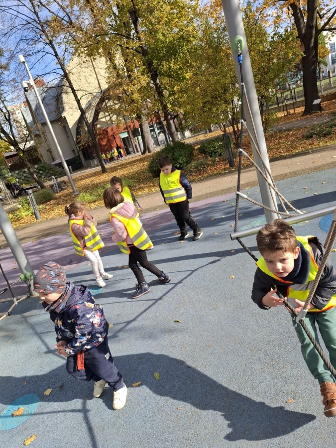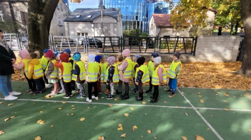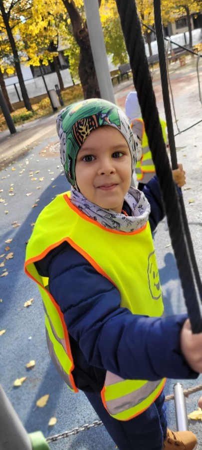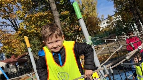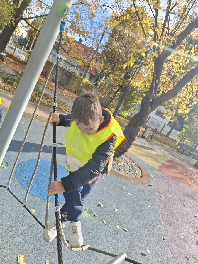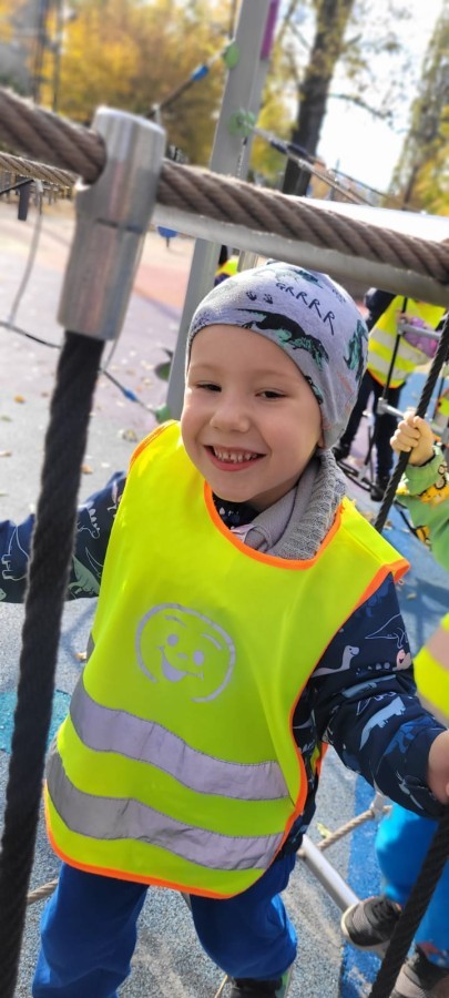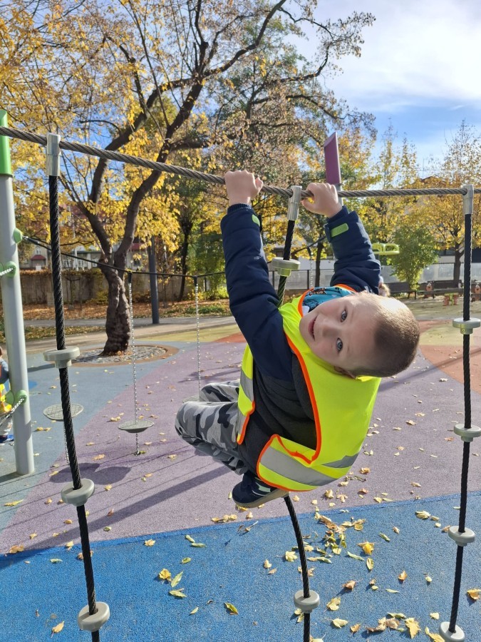 Korzystając z uroków babiego lata, wybraliśmy się na spacer. Zatrzymaliśmy się na placu zabaw Szósty Zmysł, gdzie sprawdzaliśmy oznaki jesieni: oddychaliśmy jesienią – zapachem szeleszczących liści i ciepłego powietrza. Po intensywnym poranku, wykorzystaliśmy okazję, aby przeczytać książki o tematyce jesiennej w naszej salce znajdującej się na placu zabaw.