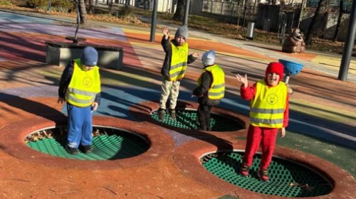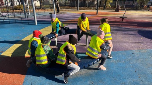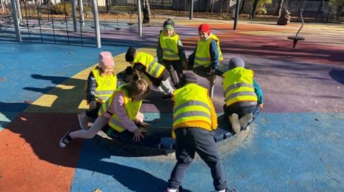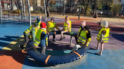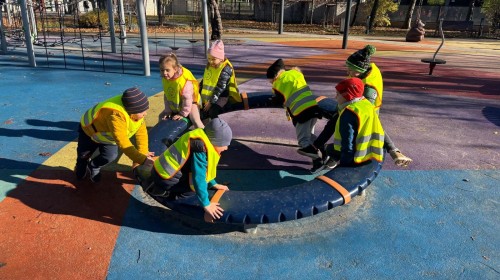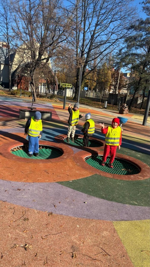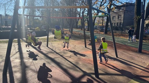 Korzystając z pięknej pogody, grupa Biedroneczek wybrała się na jesienny spacer i zabawy na placu zabaw.