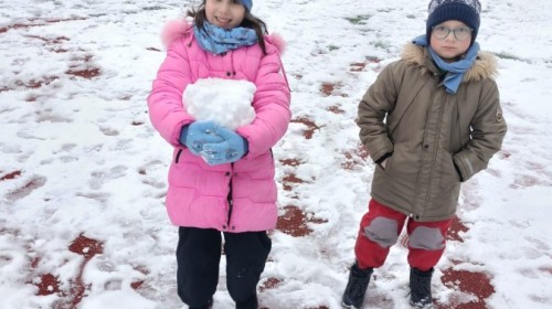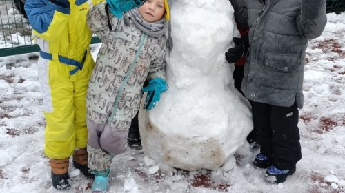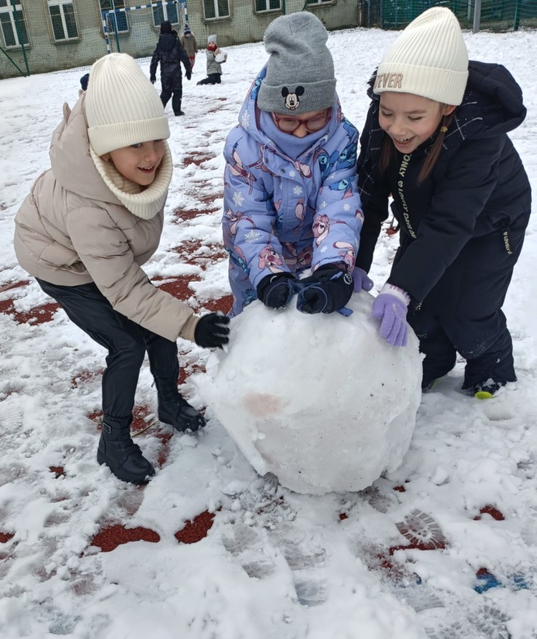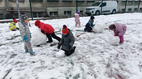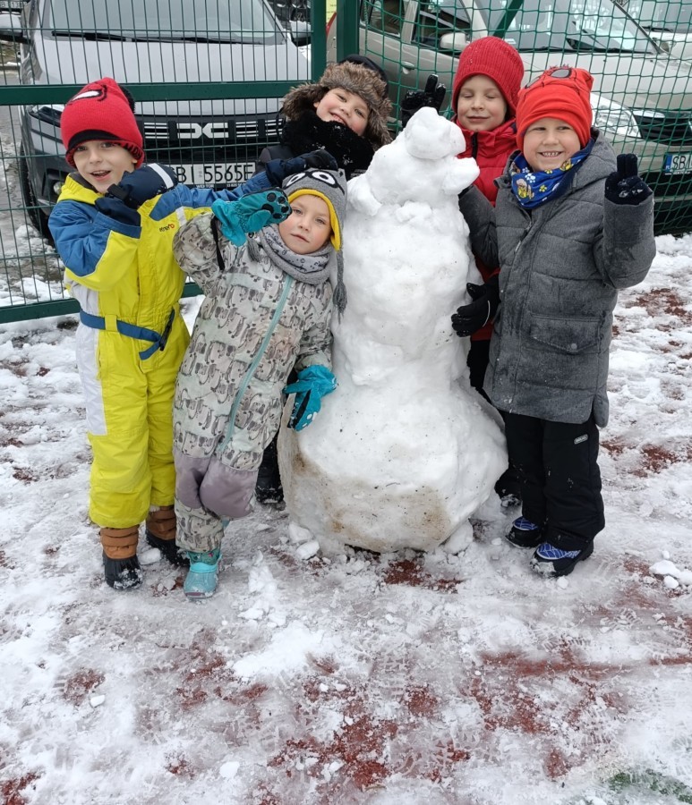 Dzieci lubią aktywnie spędzać czas, zwłaszcza na świeżym powietrzu i:)! Korzystając z pierwszej porcji śniegu, dzieci lepiły śnieżne budowle. Wszyscy mamy nadzieję, że śnieg jeszcze u nas zawita i będziemy mogli powtórzyć śnieżne harce, które przysporzyły dzieciom mnóstwo radości!