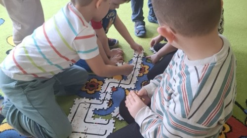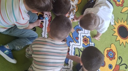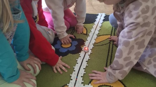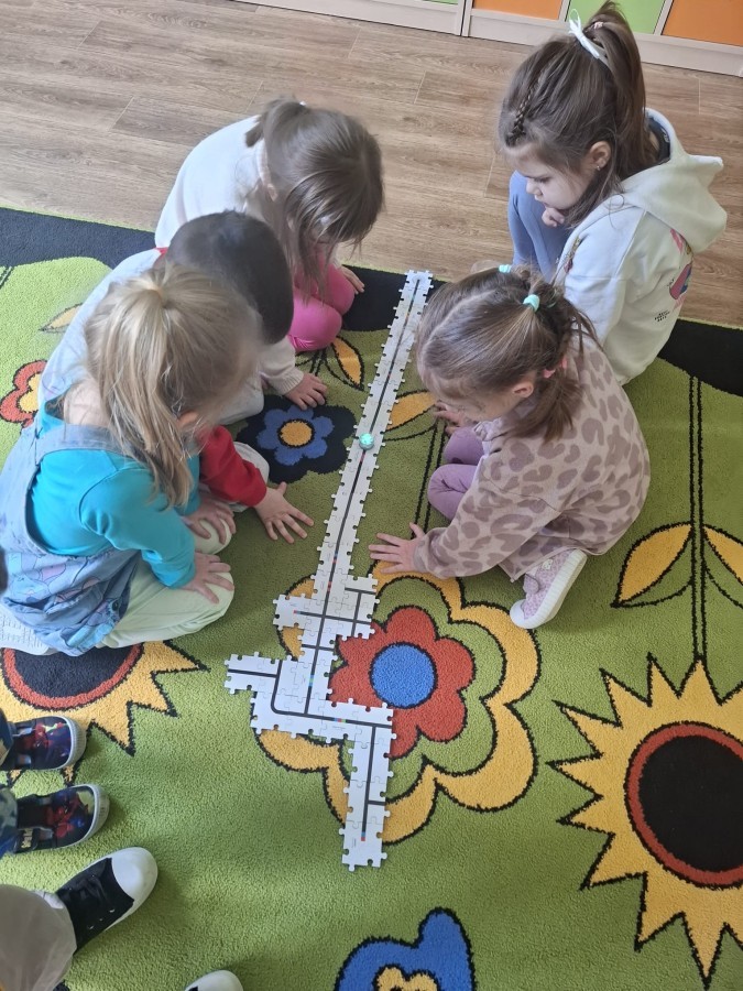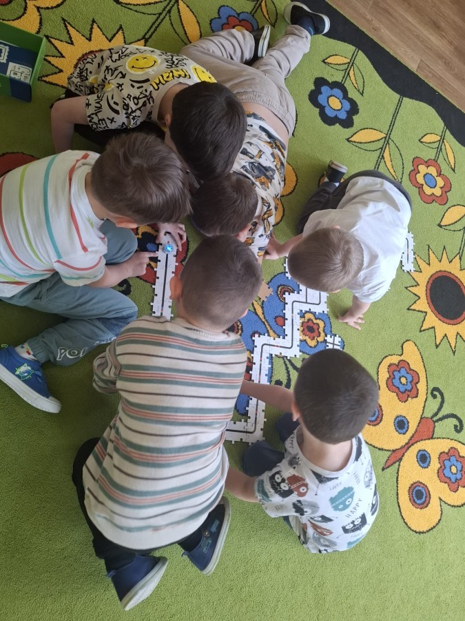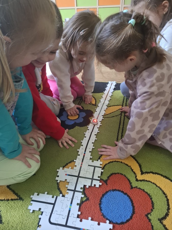 Dzieci uczestniczyły w zajęciach z ozobotem, dzięki któremu rozwijają myślenie logiczne i przyczynowo-skutkowe, a także rozwój motoryki małej.